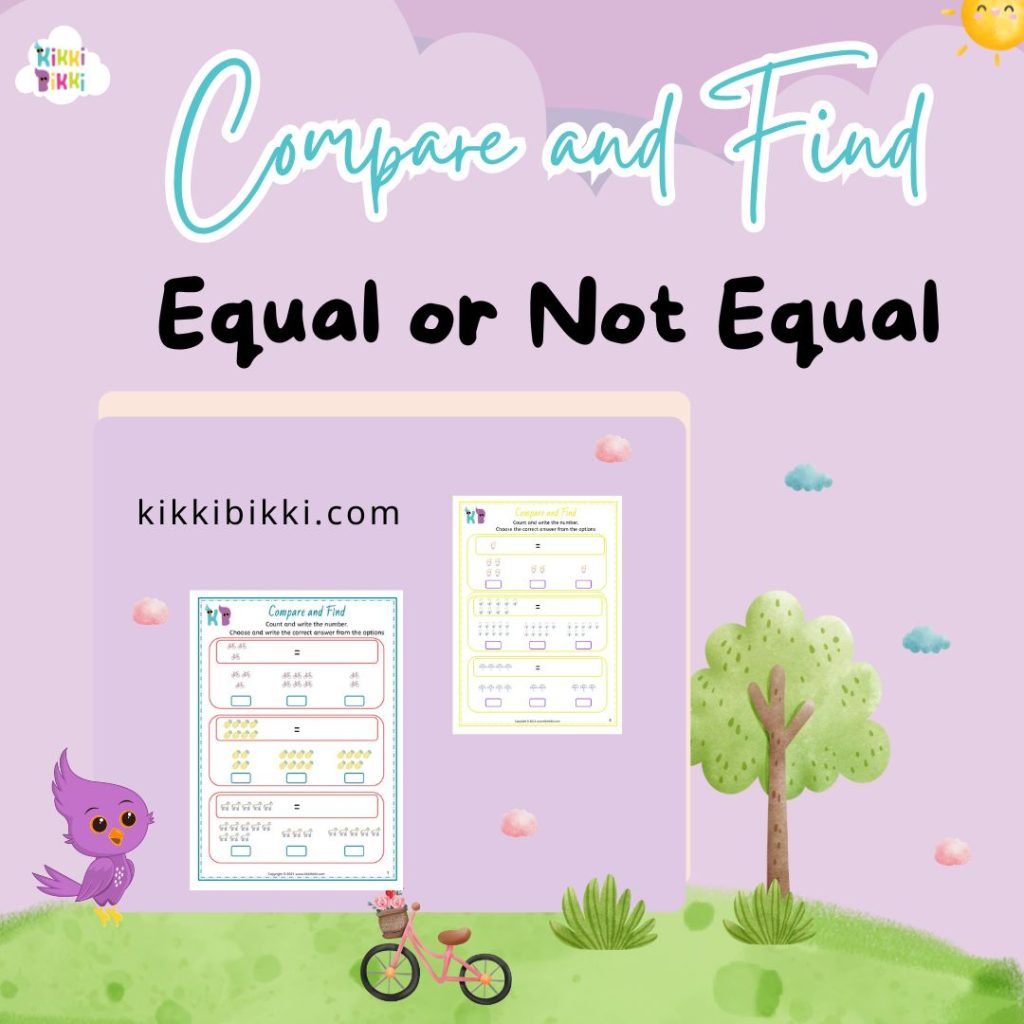 Explain Math – Equal or Not Equal, Compare and Find Worksheets for Kindergarten