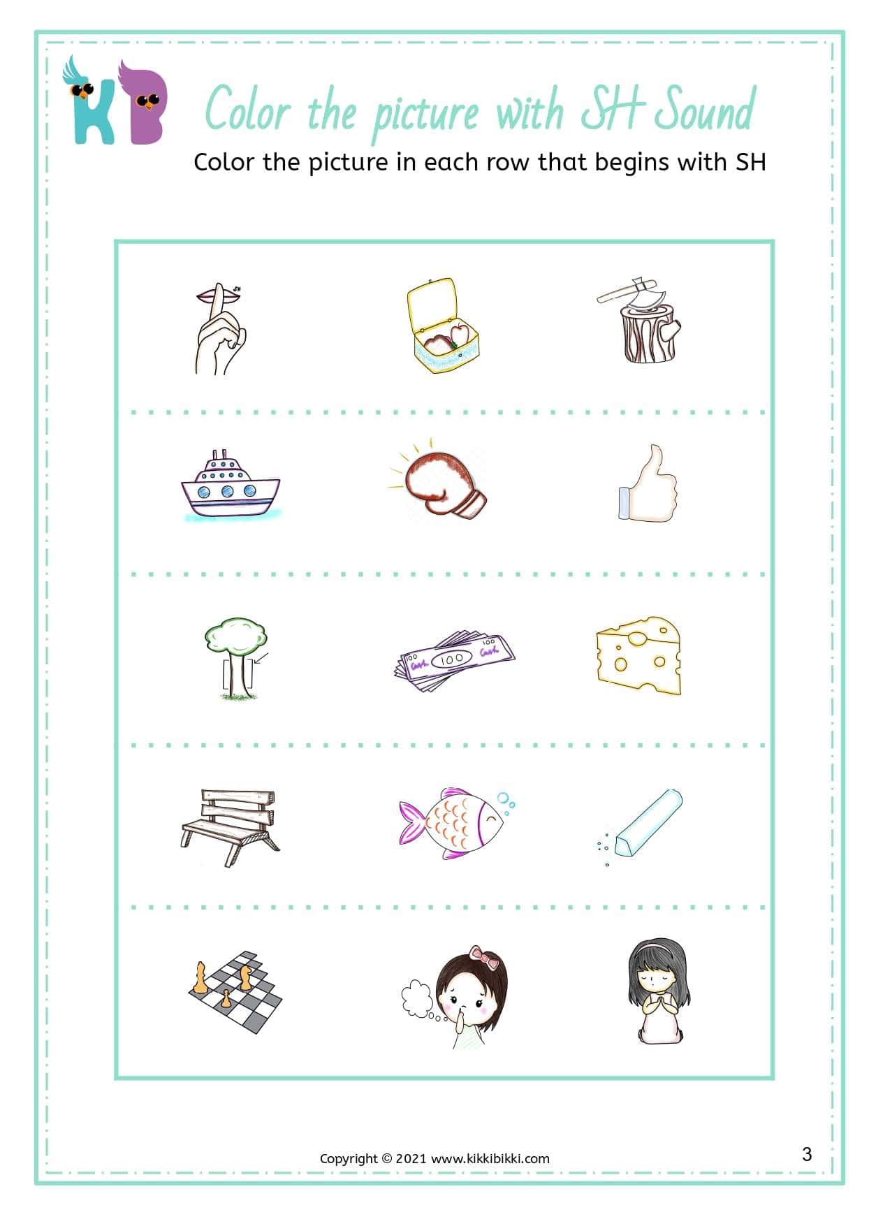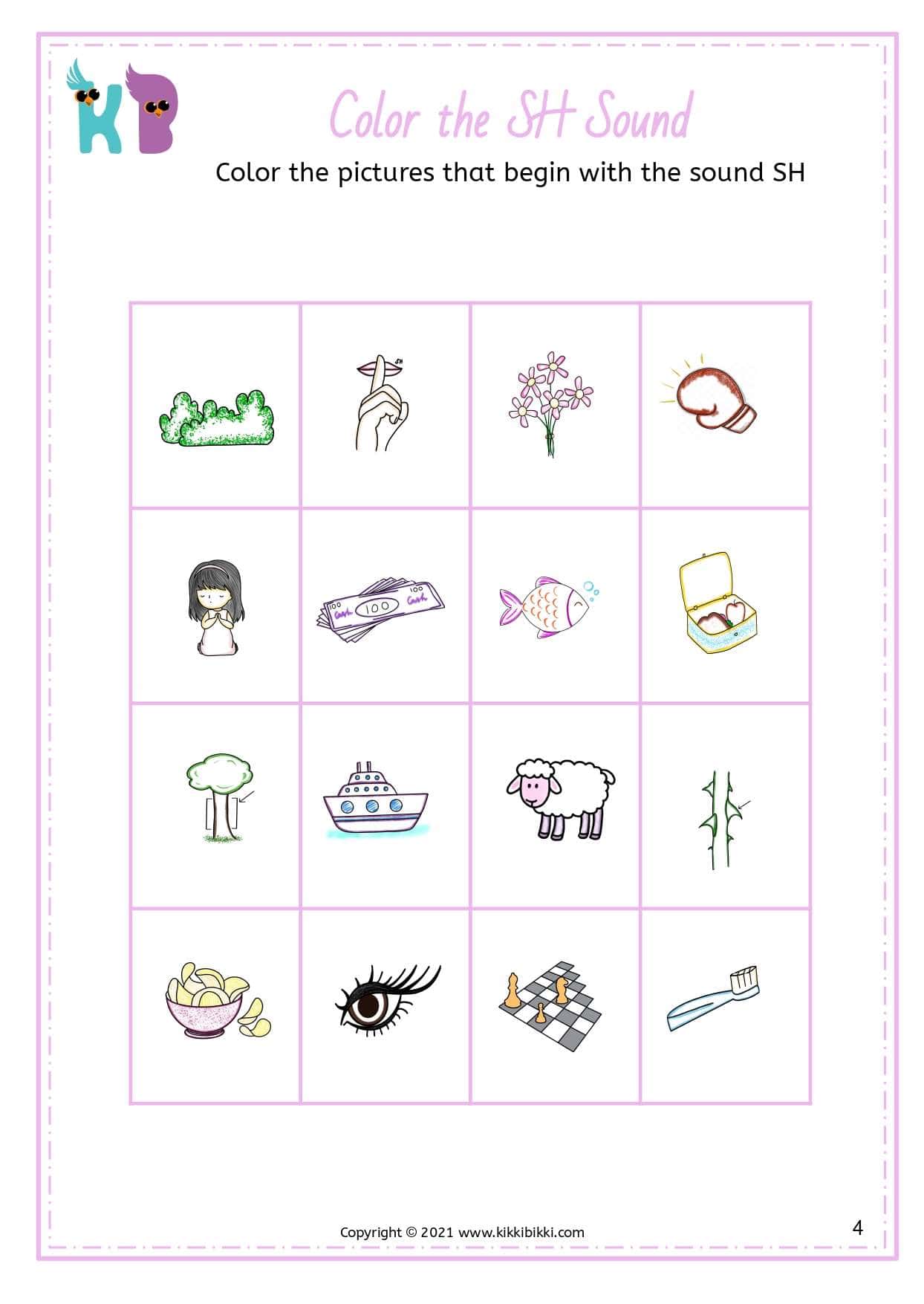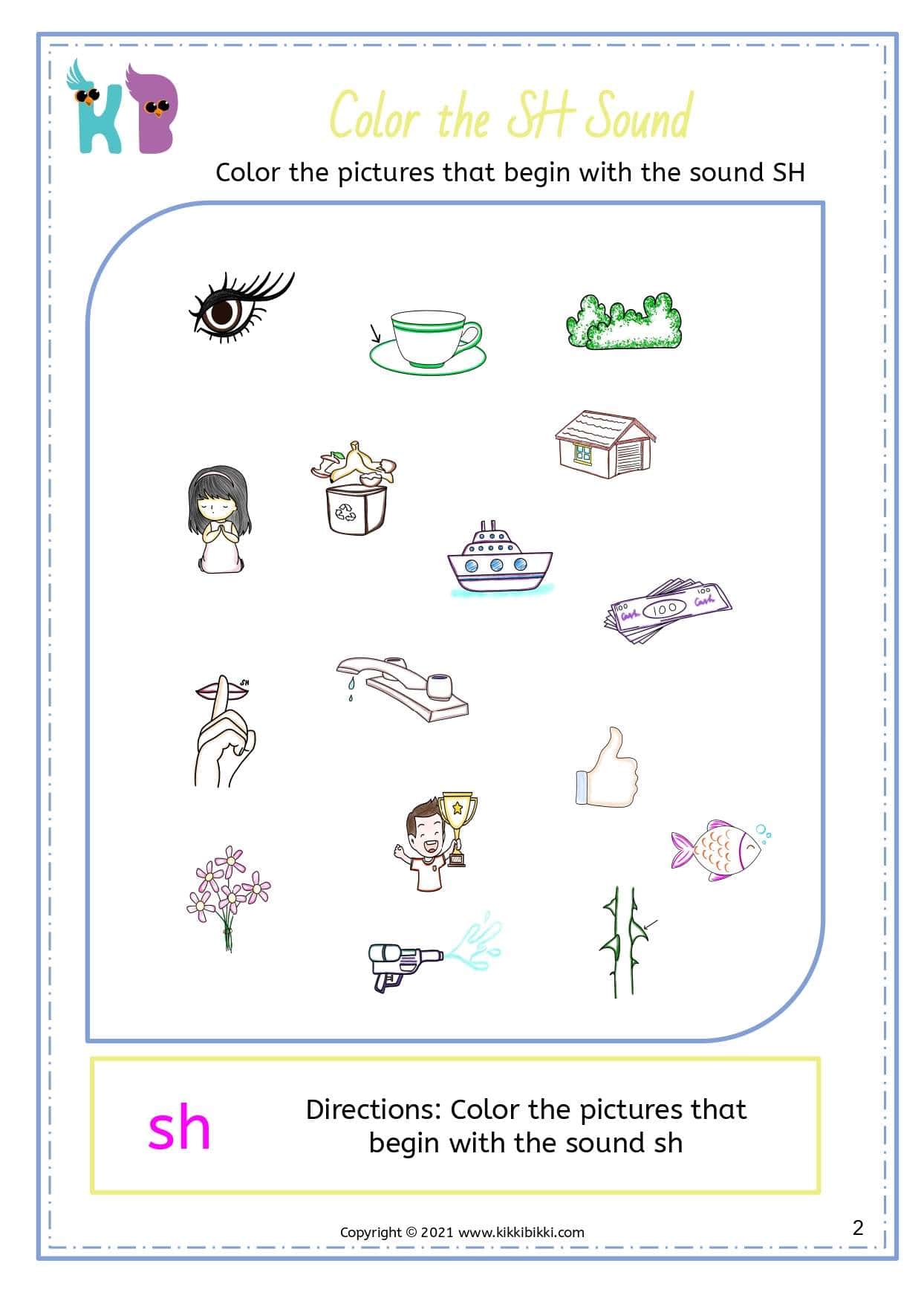 Feel free to explore our interactive worksheet, color the “SH” sound objects, and reinforce your phonics skills.