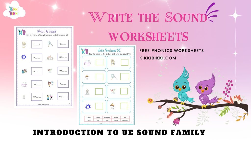 Now, let’s create a fun worksheet for kindergarten children to practice the “UE” sound. Feel free to adapt this for your learners: