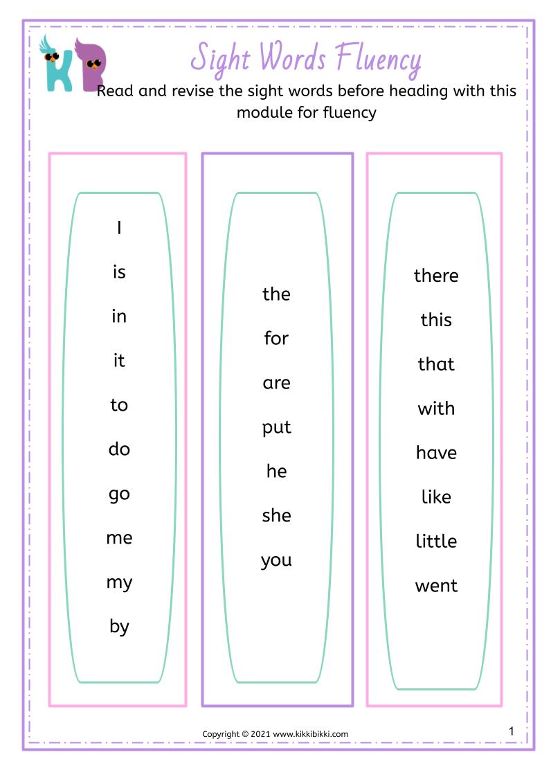 Through various engaging activities, young learners will practice recognizing and reading sight words, as well as CVC words, to improve their reading fluency. These worksheets provide a fun and effective way to reinforce phonemic awareness and develop a strong foundation in early literacy. By consistently practicing with our free printable worksheets, children will gain confidence in their reading abilities and enjoy the learning process. With KikkiBikki, mastering CVC fluency and sight words has never been more enjoyable!