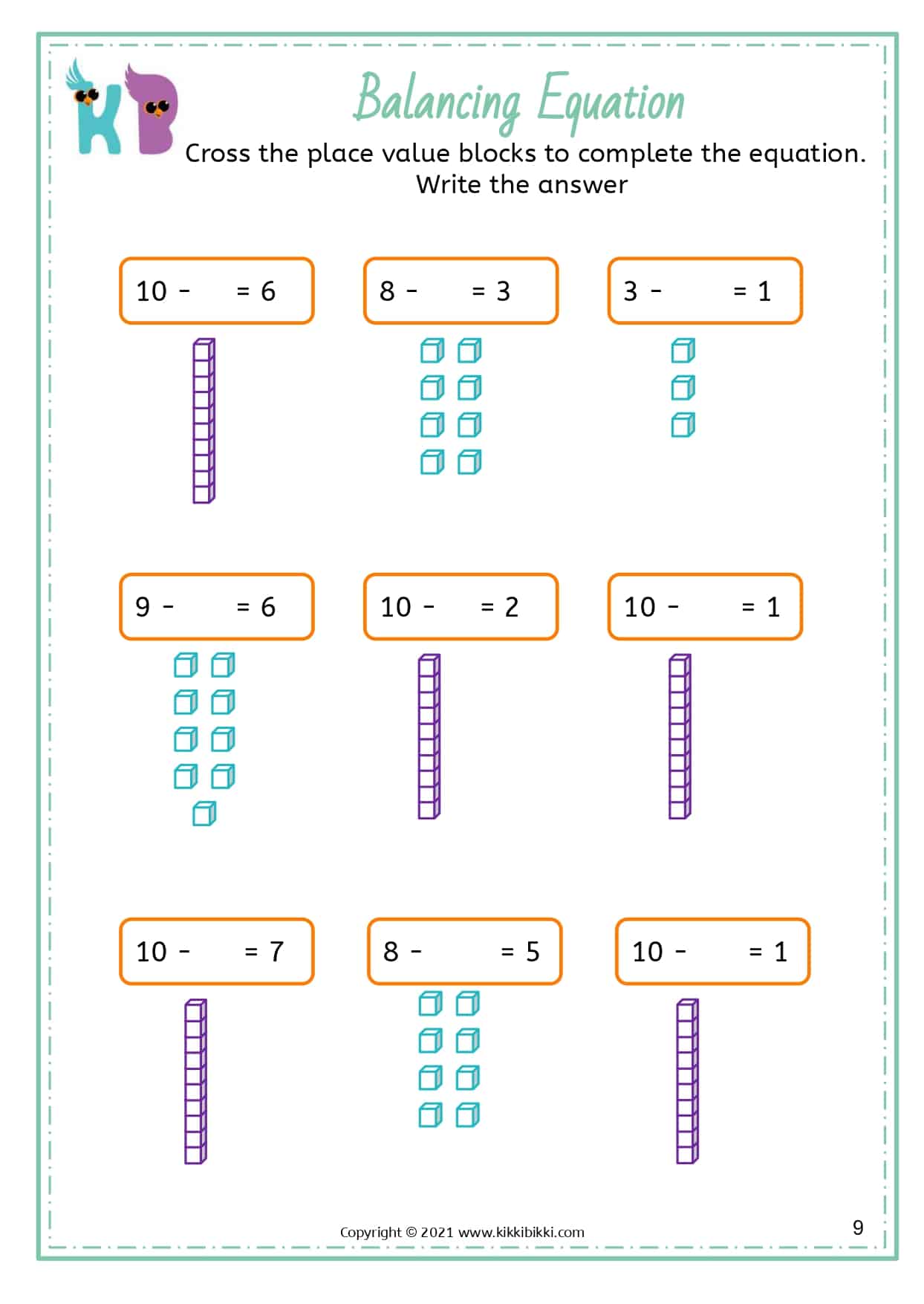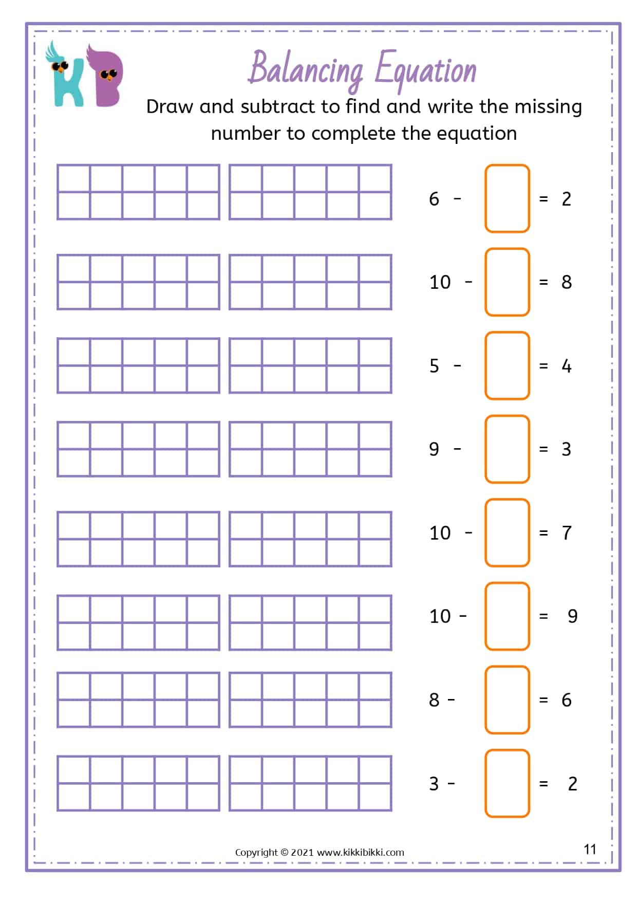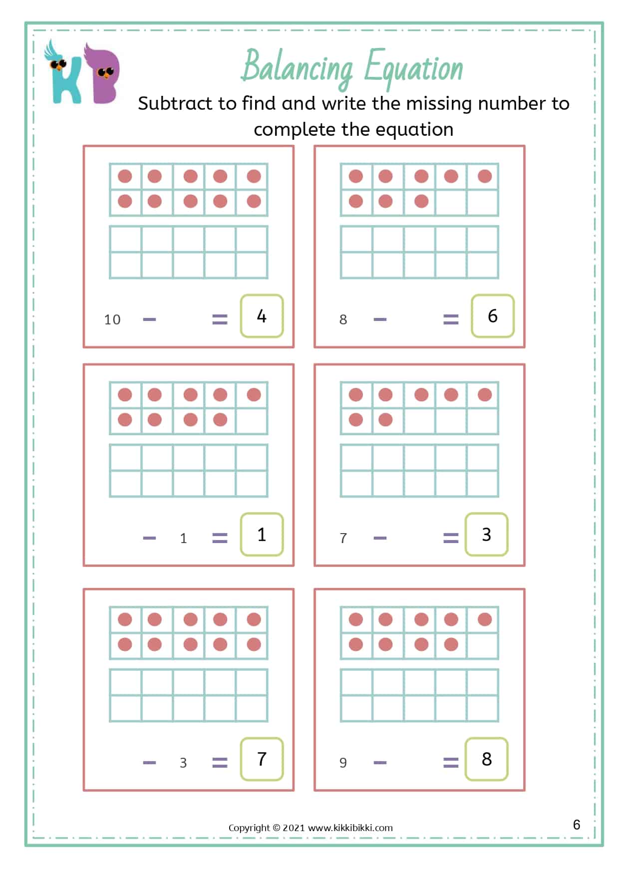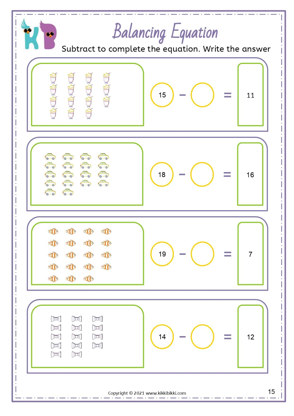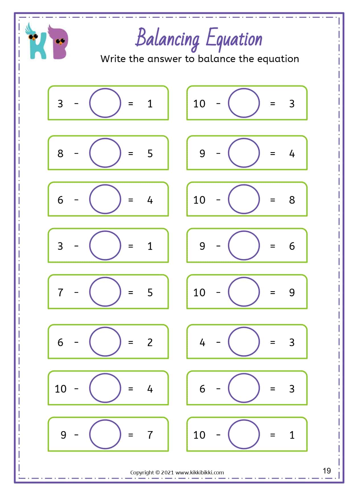 Learn Basics of Equation using Subtraction 30 Free Worksheets