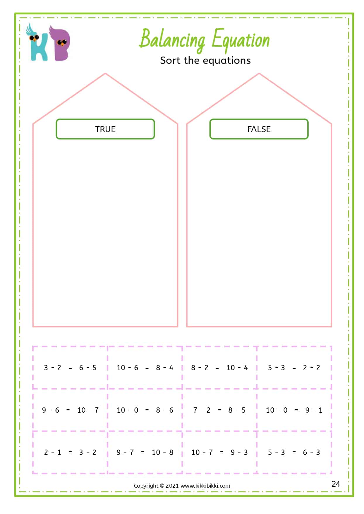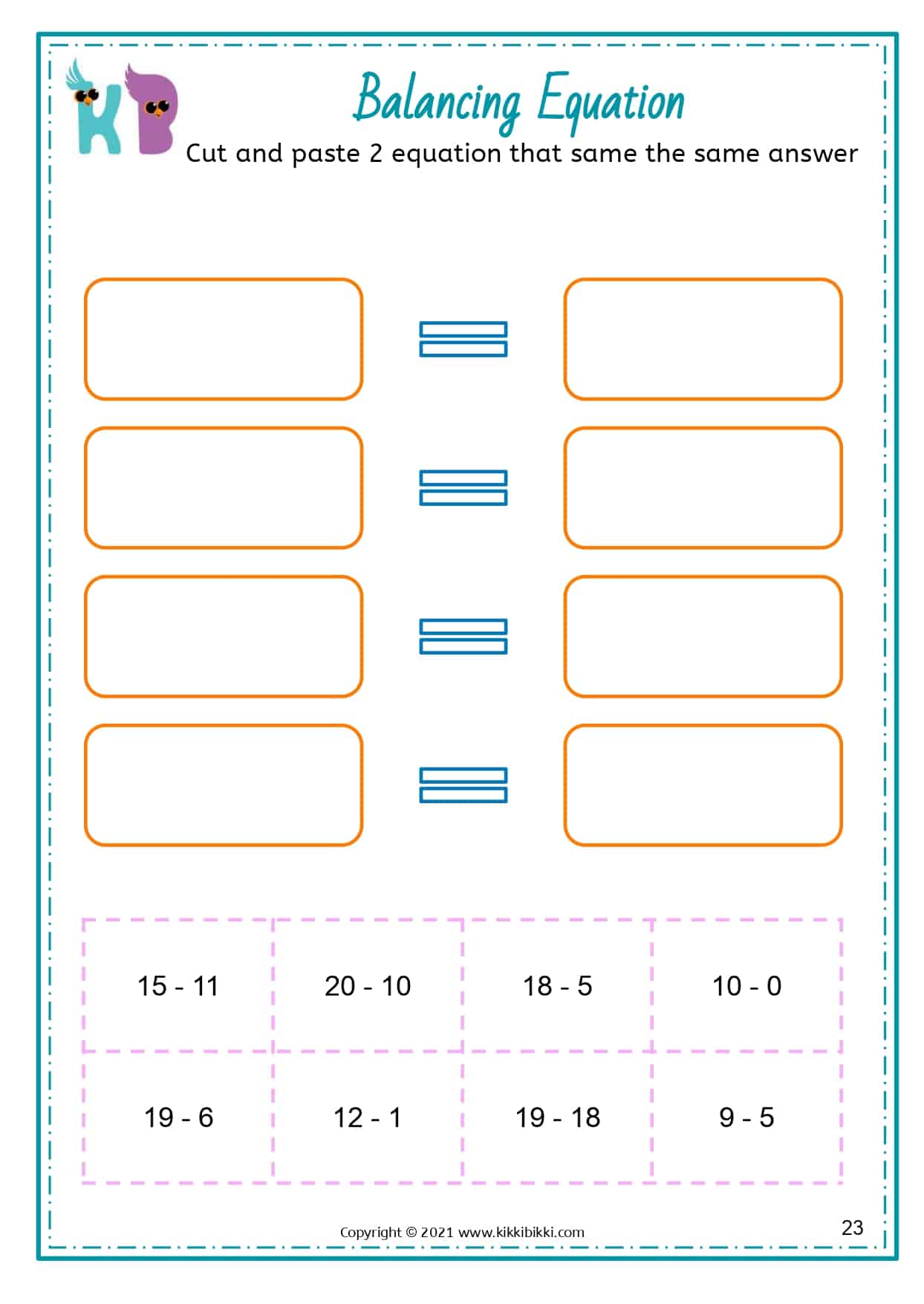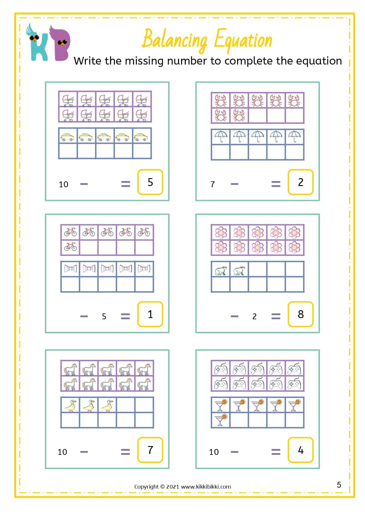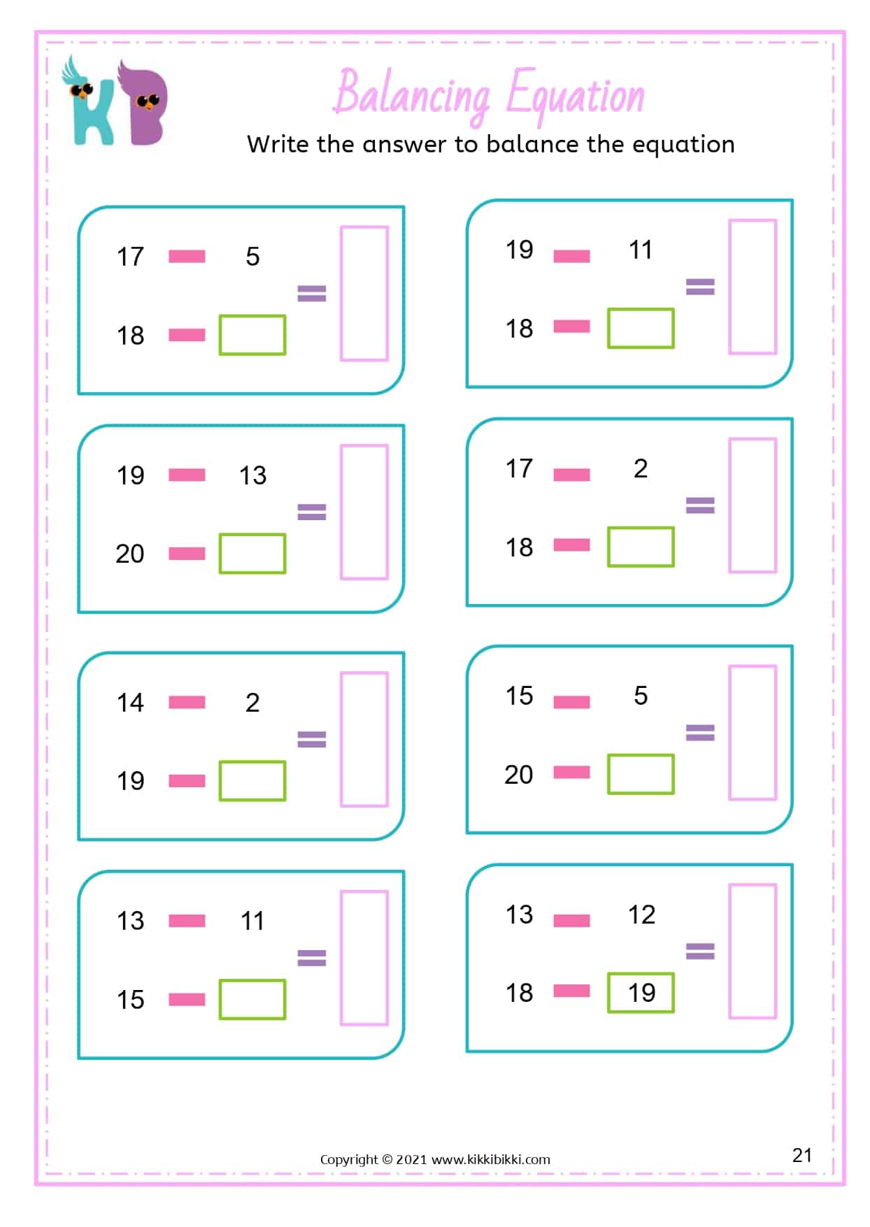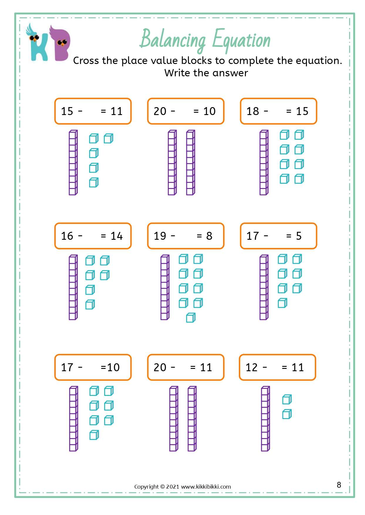 Learn Basics of Equation using Subtraction 30 Free Worksheets