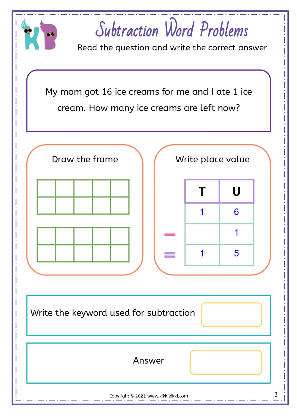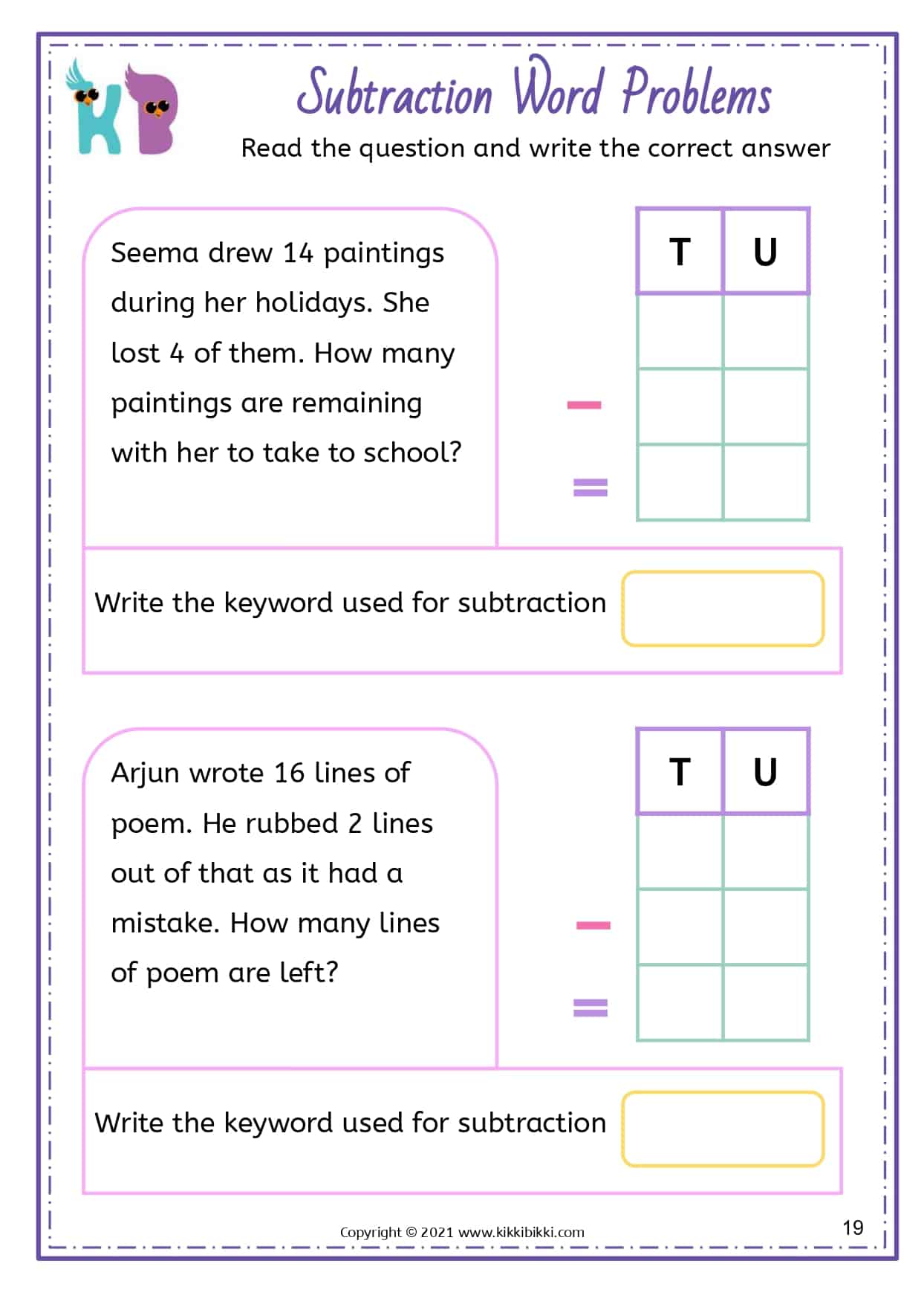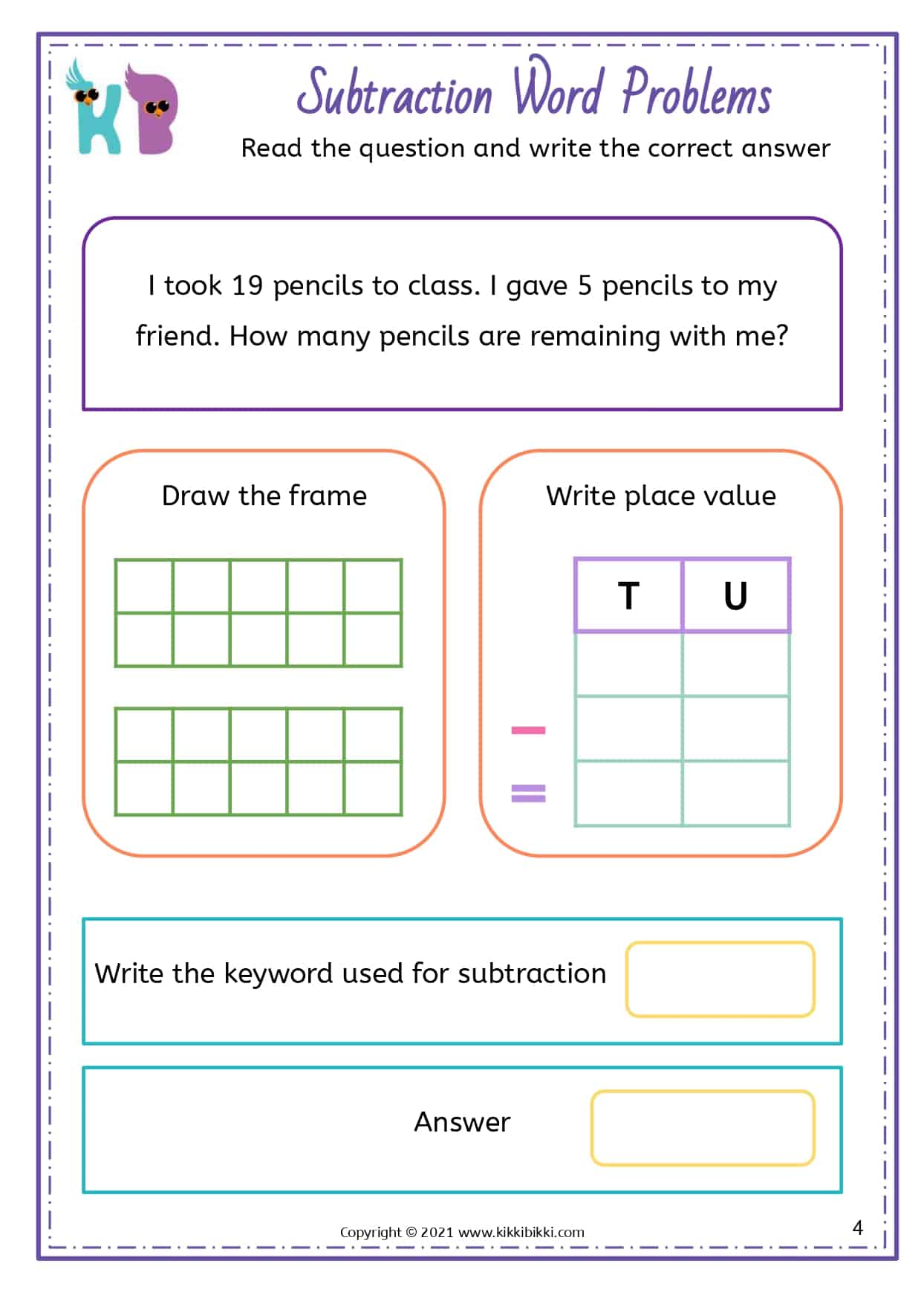 Enjoy the journey of Introduction to Word Problems Subtraction with your child.