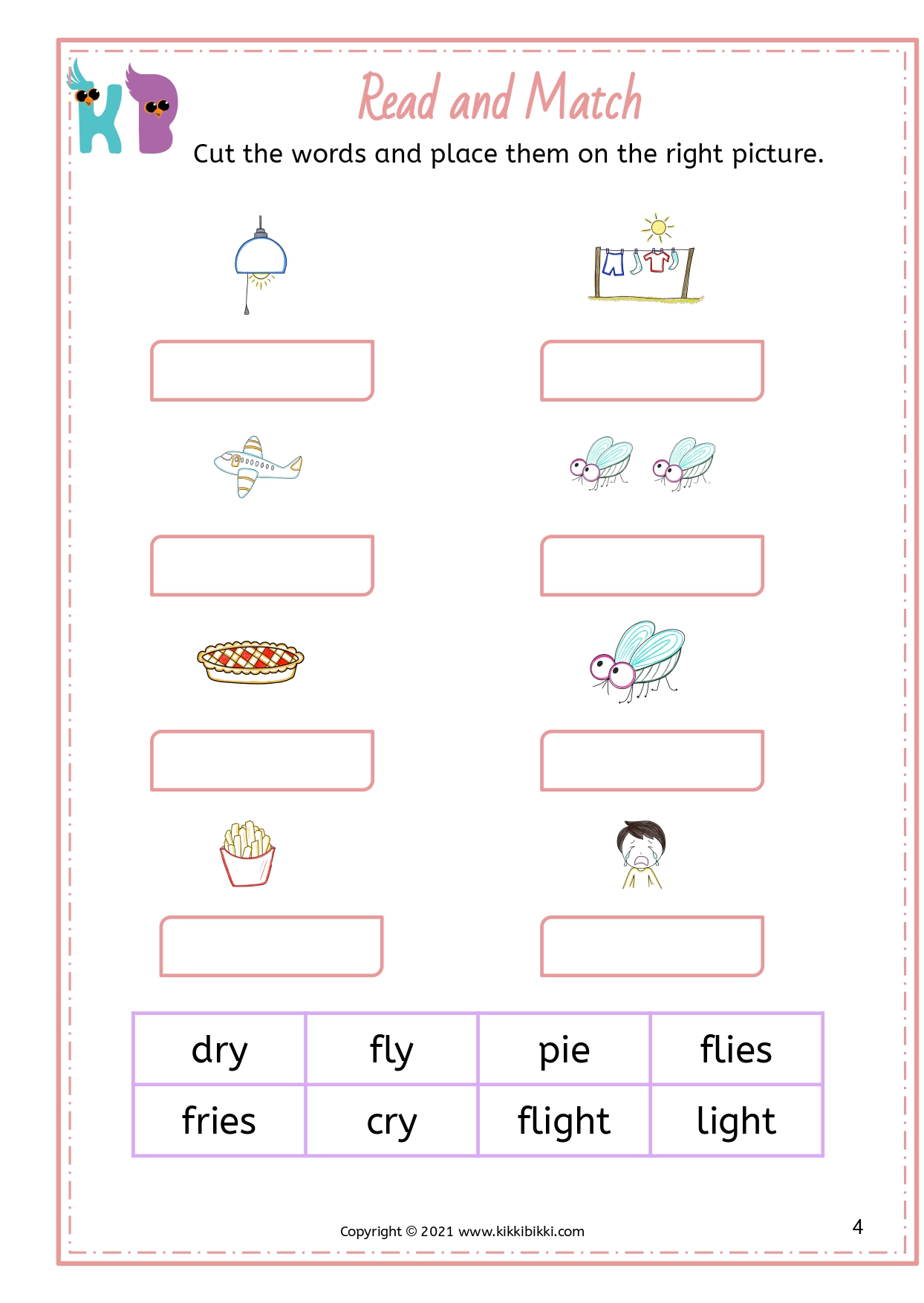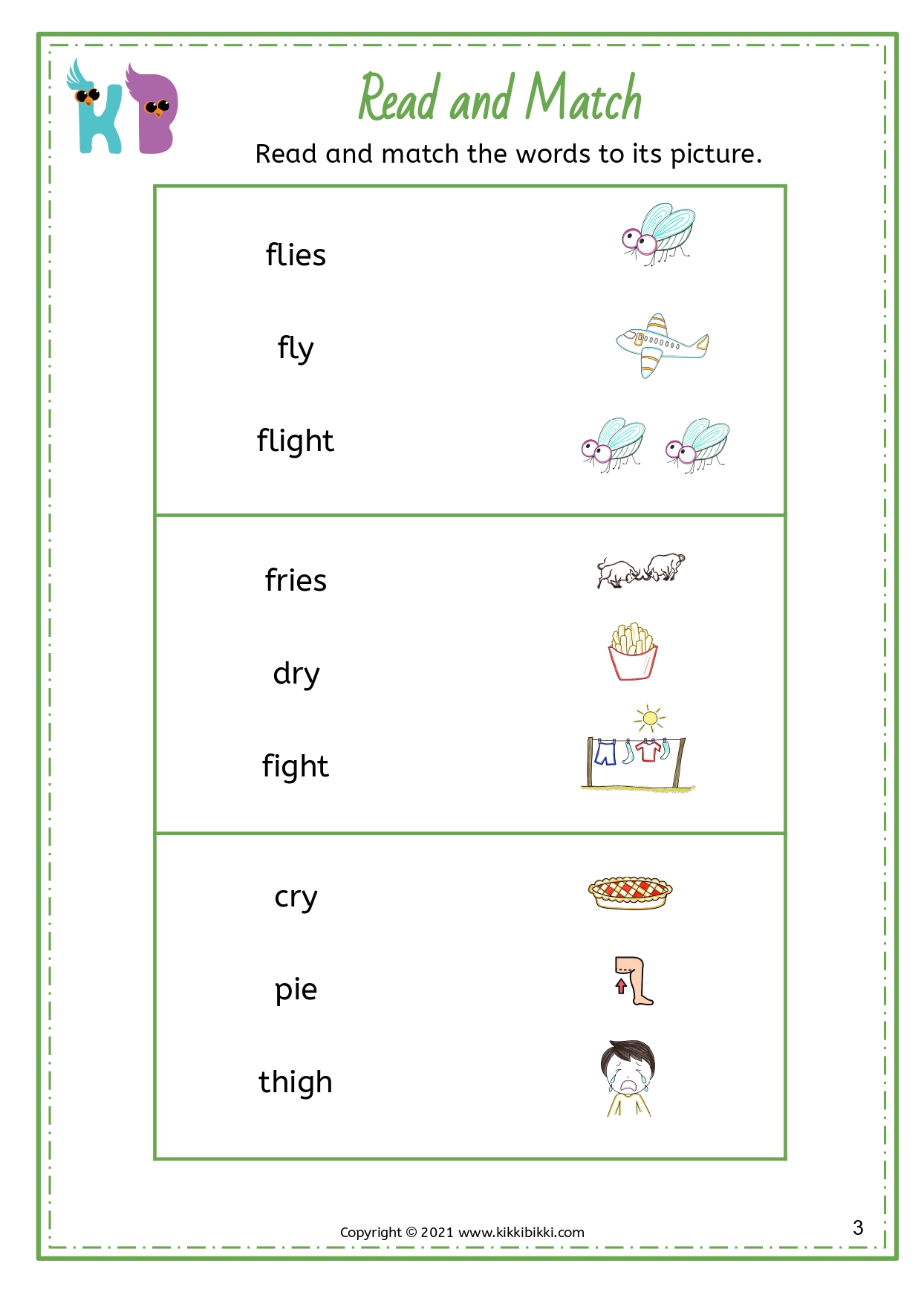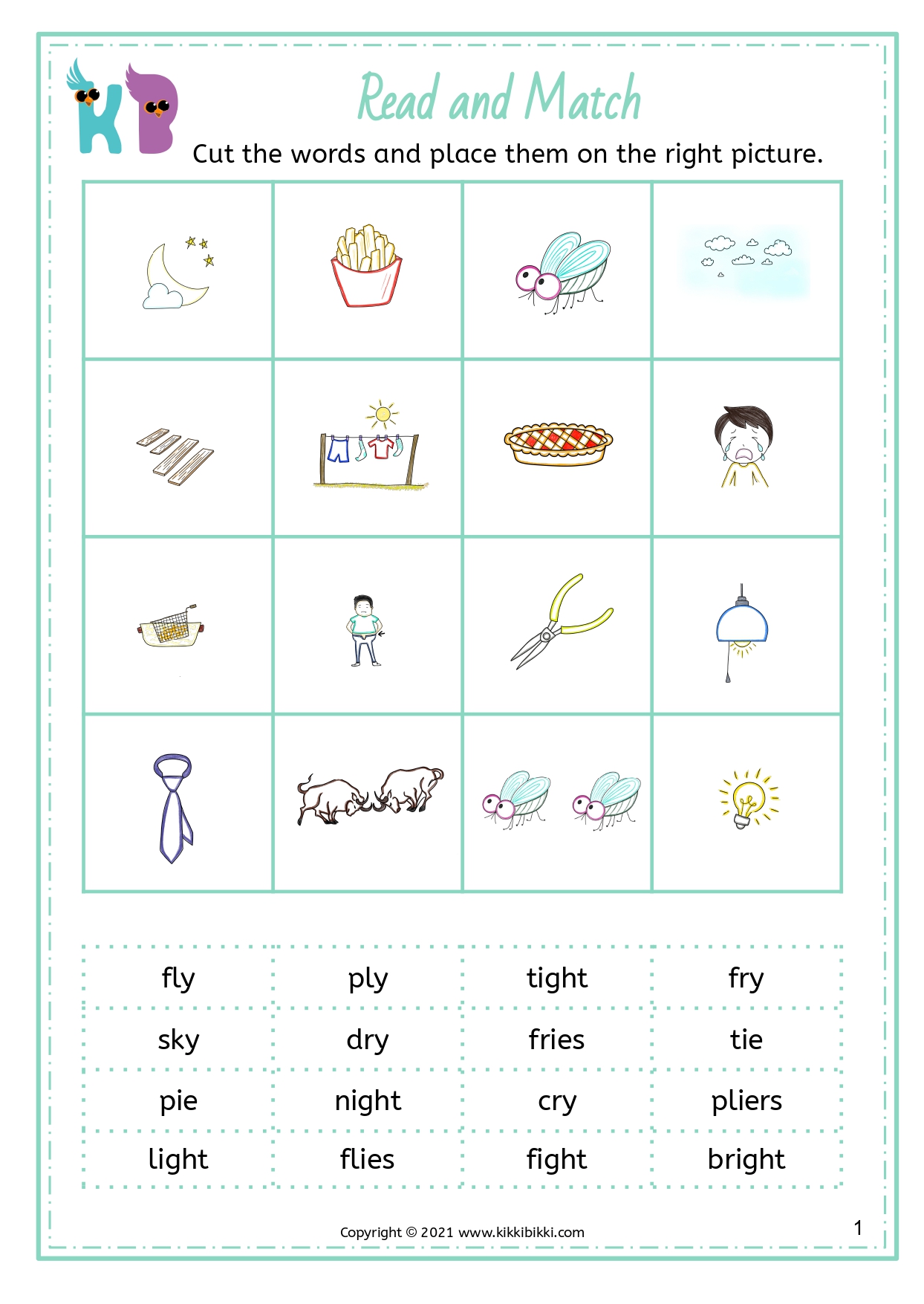This worksheet helps children distinguish how IE, IGH, and Y produce the same “long I” sound.