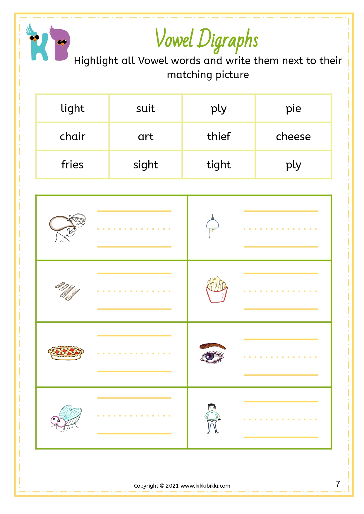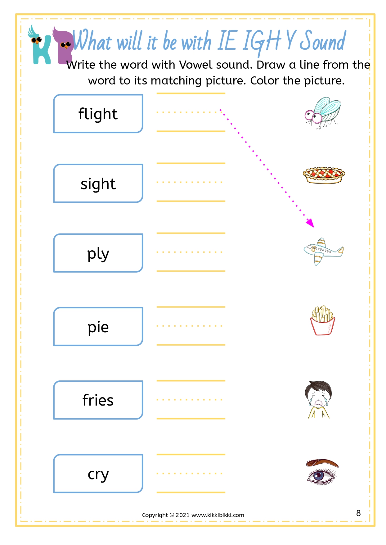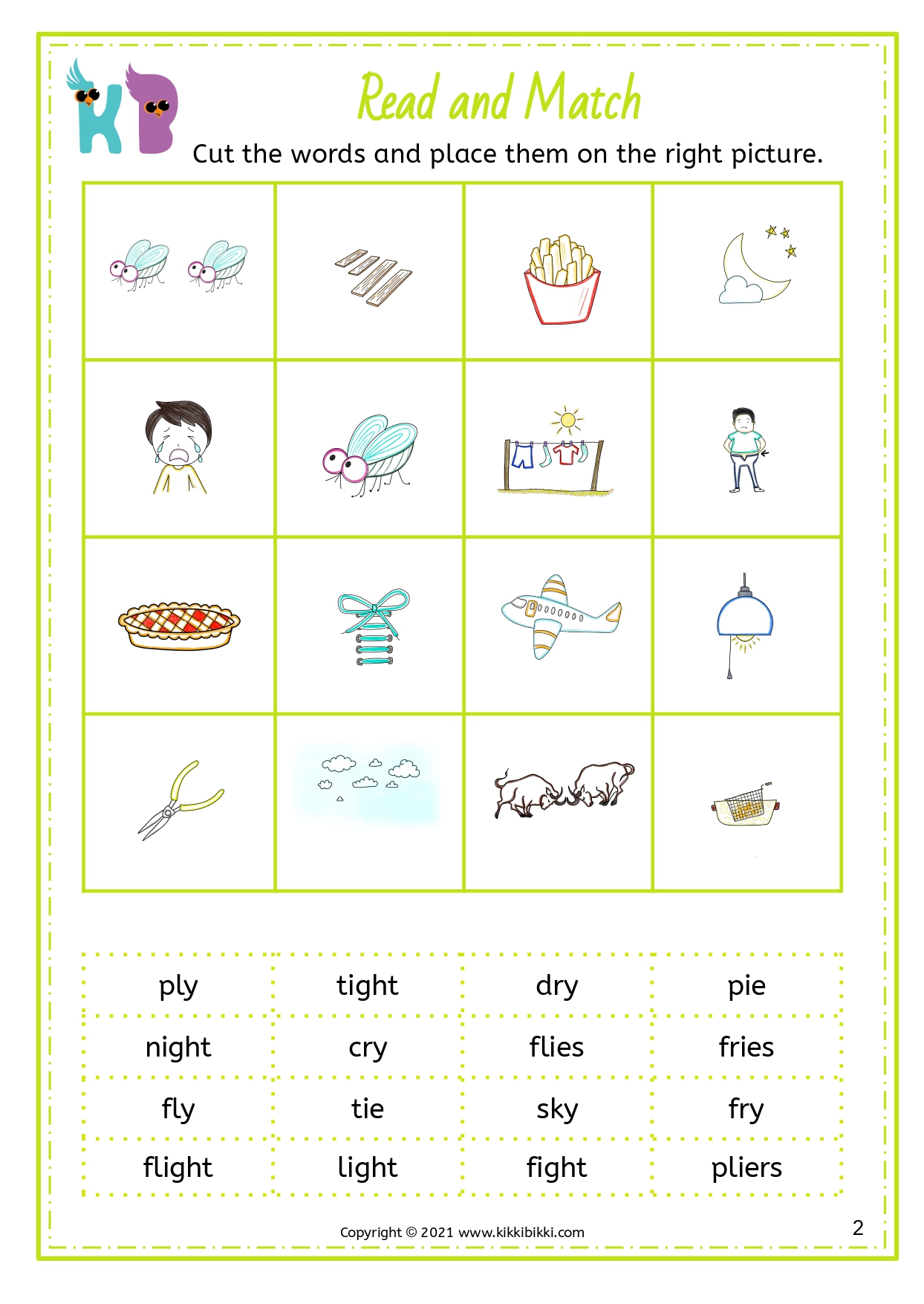 This worksheet helps children distinguish how IE, IGH, and Y produce the same “long I” sound.