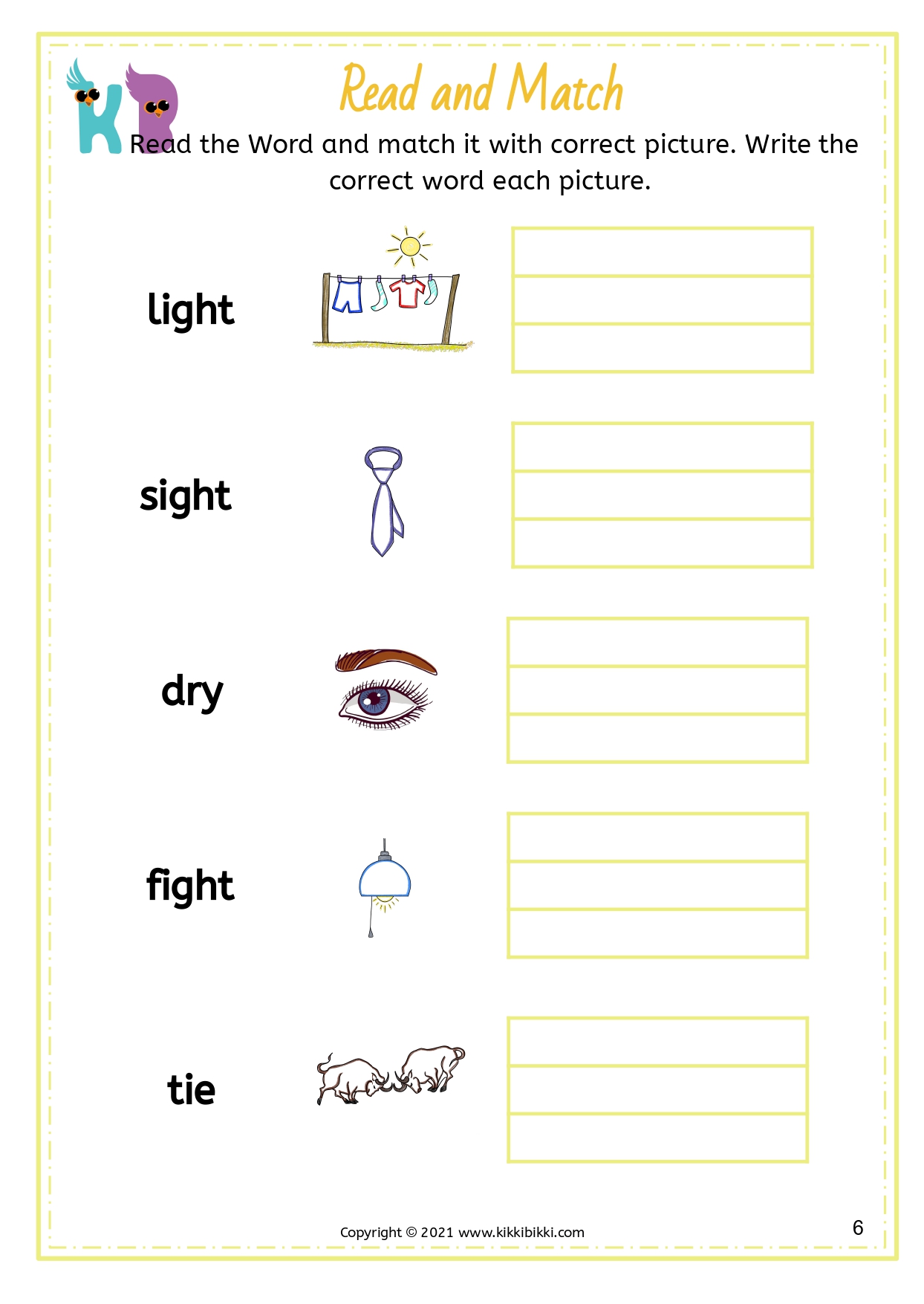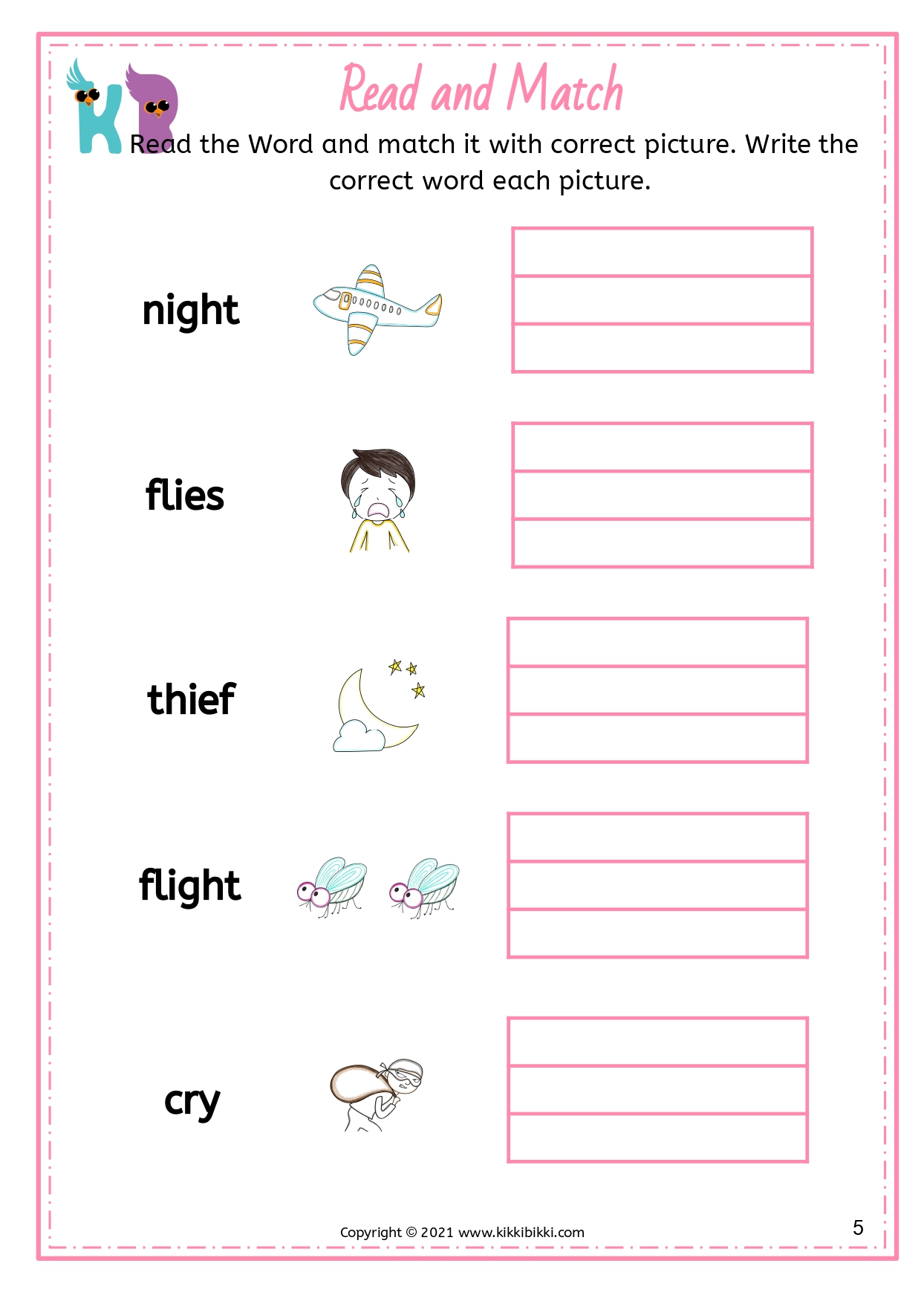 This Read and Match worksheet provides a structured yet enjoyable approach to phonics learning, helping young students confidently grasp the IE, IGH, and Y sound families in an engaging way!
