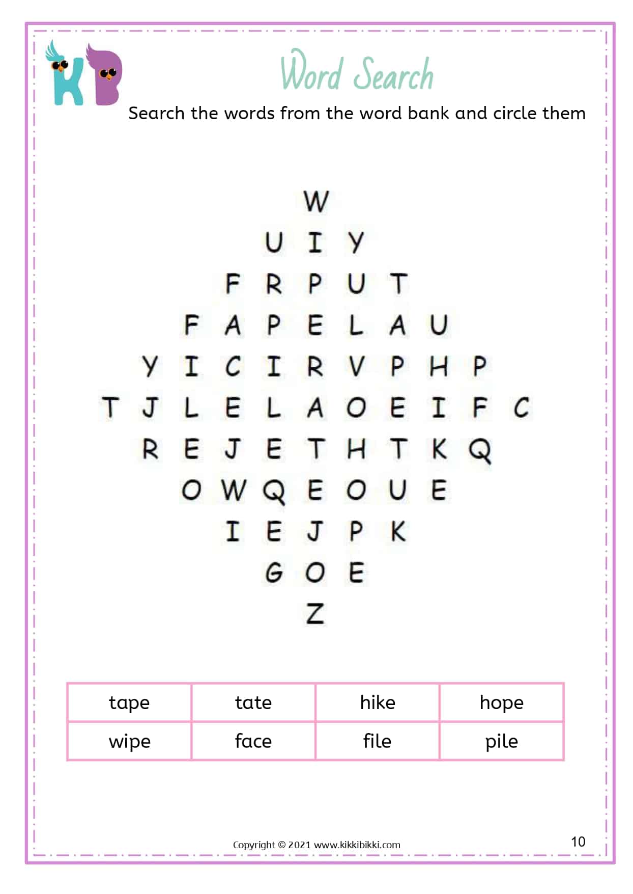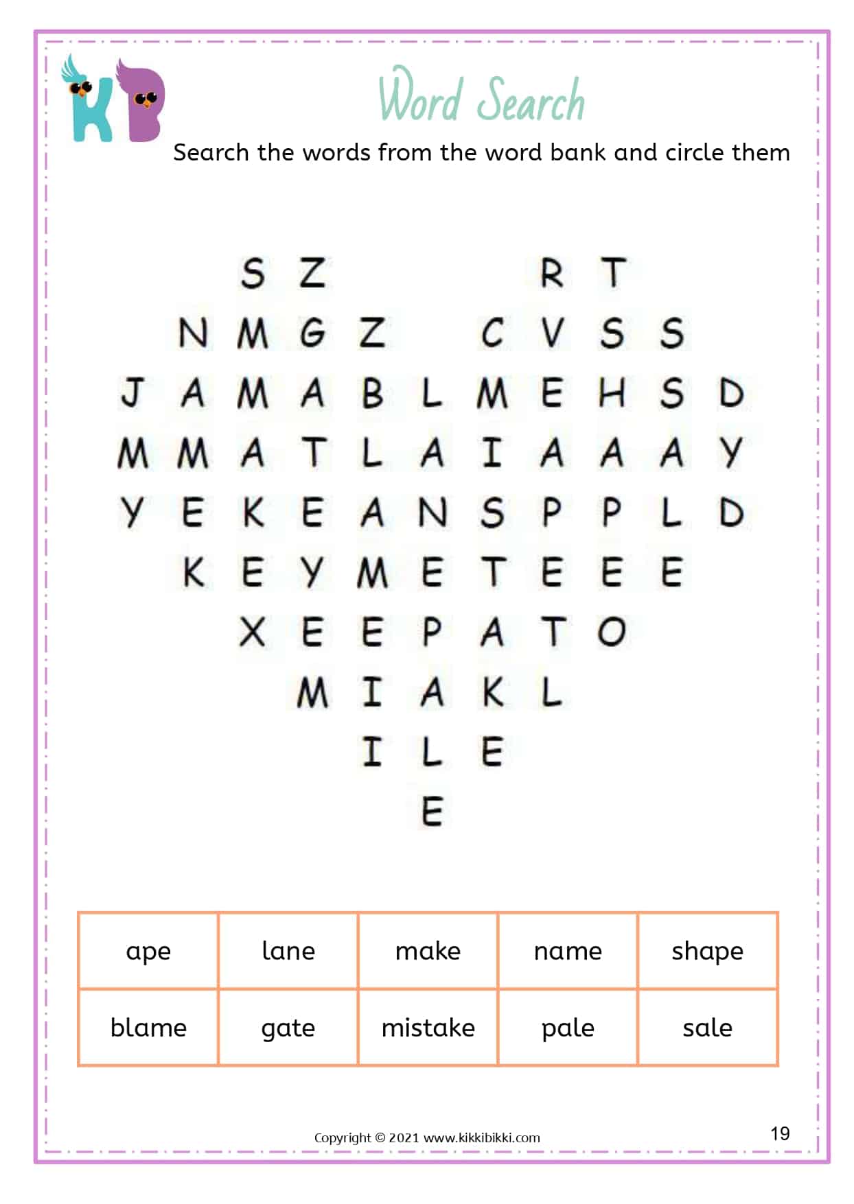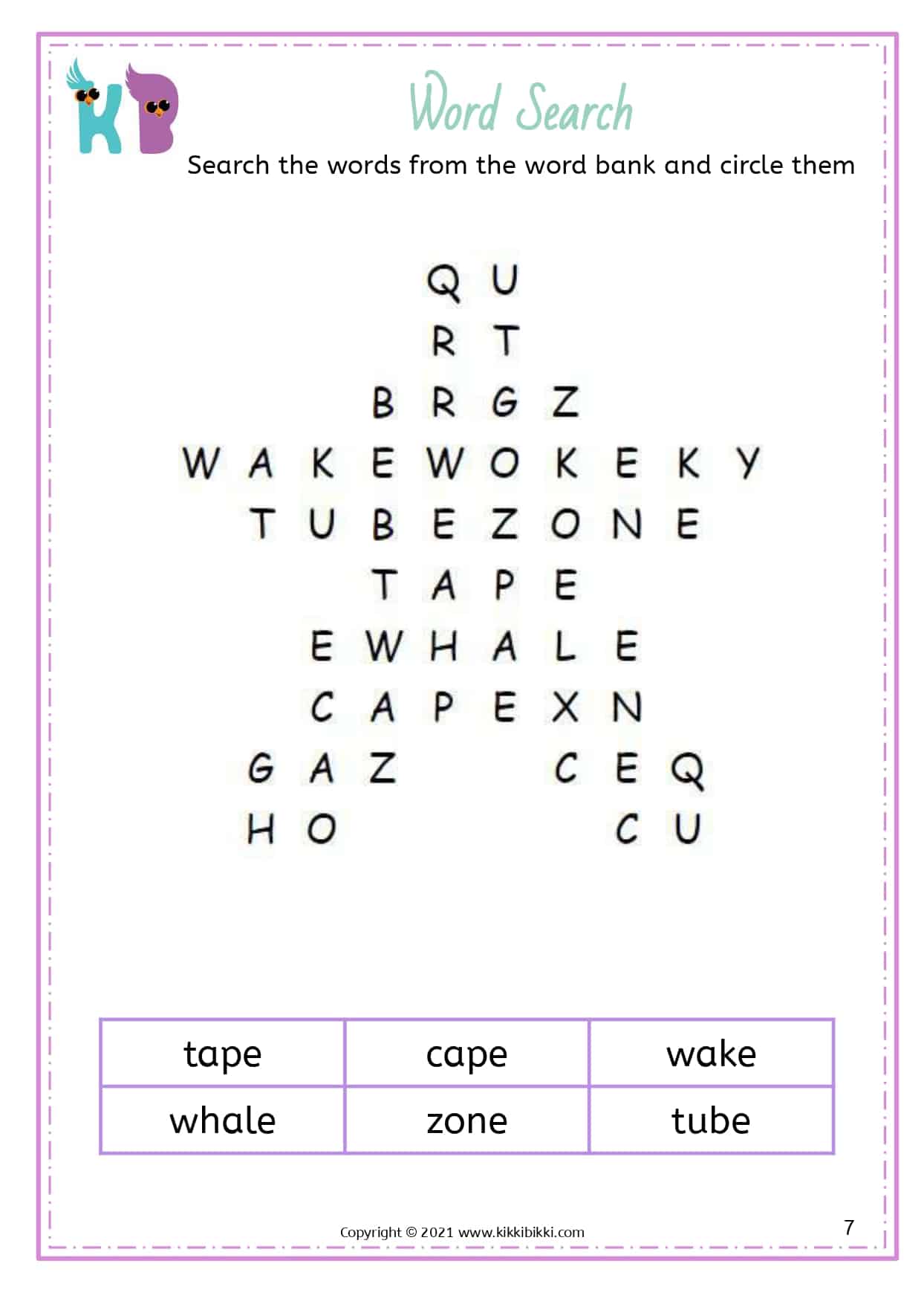 Our free printable word search worksheets with silent E specifically focus on reinforcing long vowel sounds. These worksheets are designed to assist kindergarteners in strengthening their understanding and application of this important phonetic principle. Each word search puzzle contains a selection of words featuring the silent E pattern, allowing students to actively search for and identify words with long vowel sounds created by the silent E. By engaging in these enjoyable word search exercises, young learners gain proficiency in differentiating between short and long vowel sounds, resulting in improved reading fluency. These interactive and engaging activities offer an entertaining way for students to reinforce their phonics skills while expanding their silent E word recognition abilities. Start printing our free printable word search worksheets today and discover the magic of silent E in developing reading fluency.