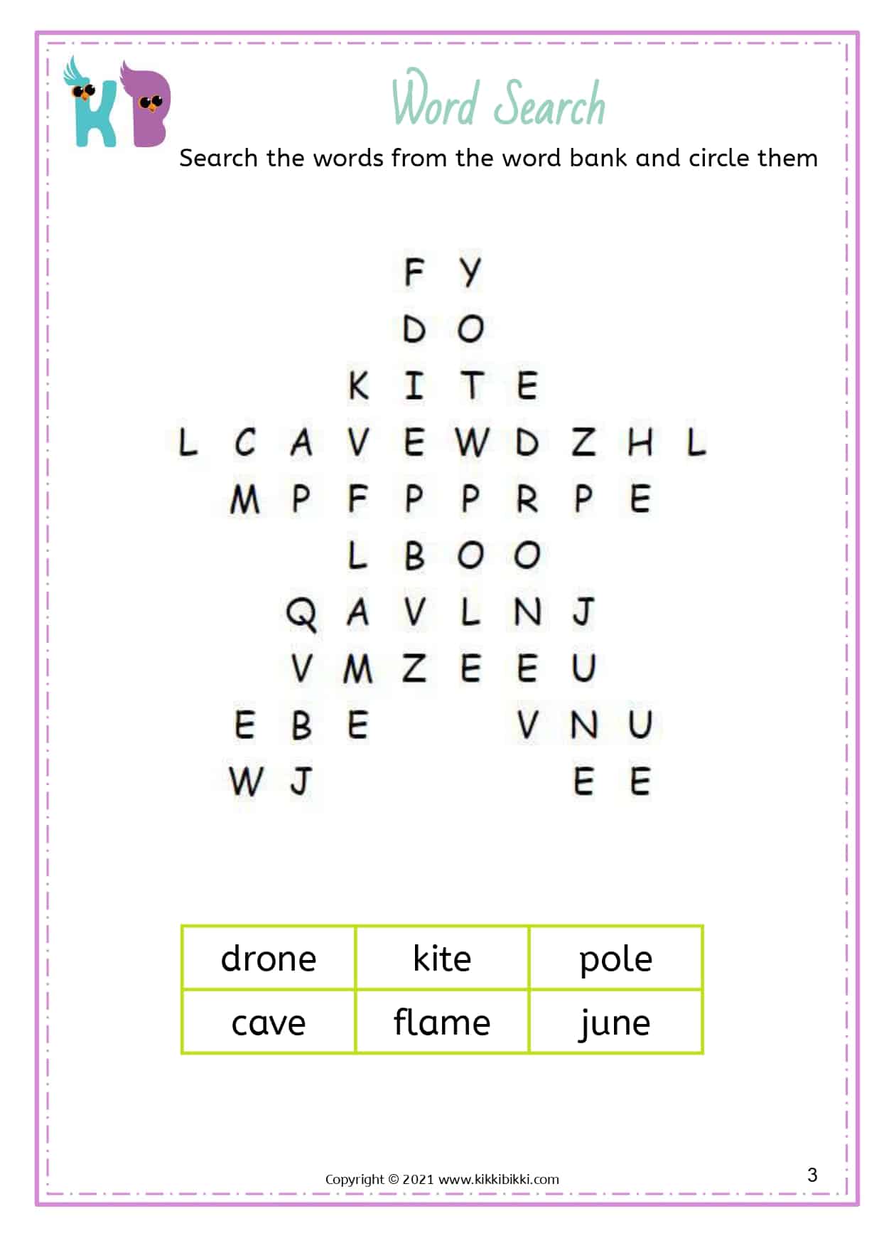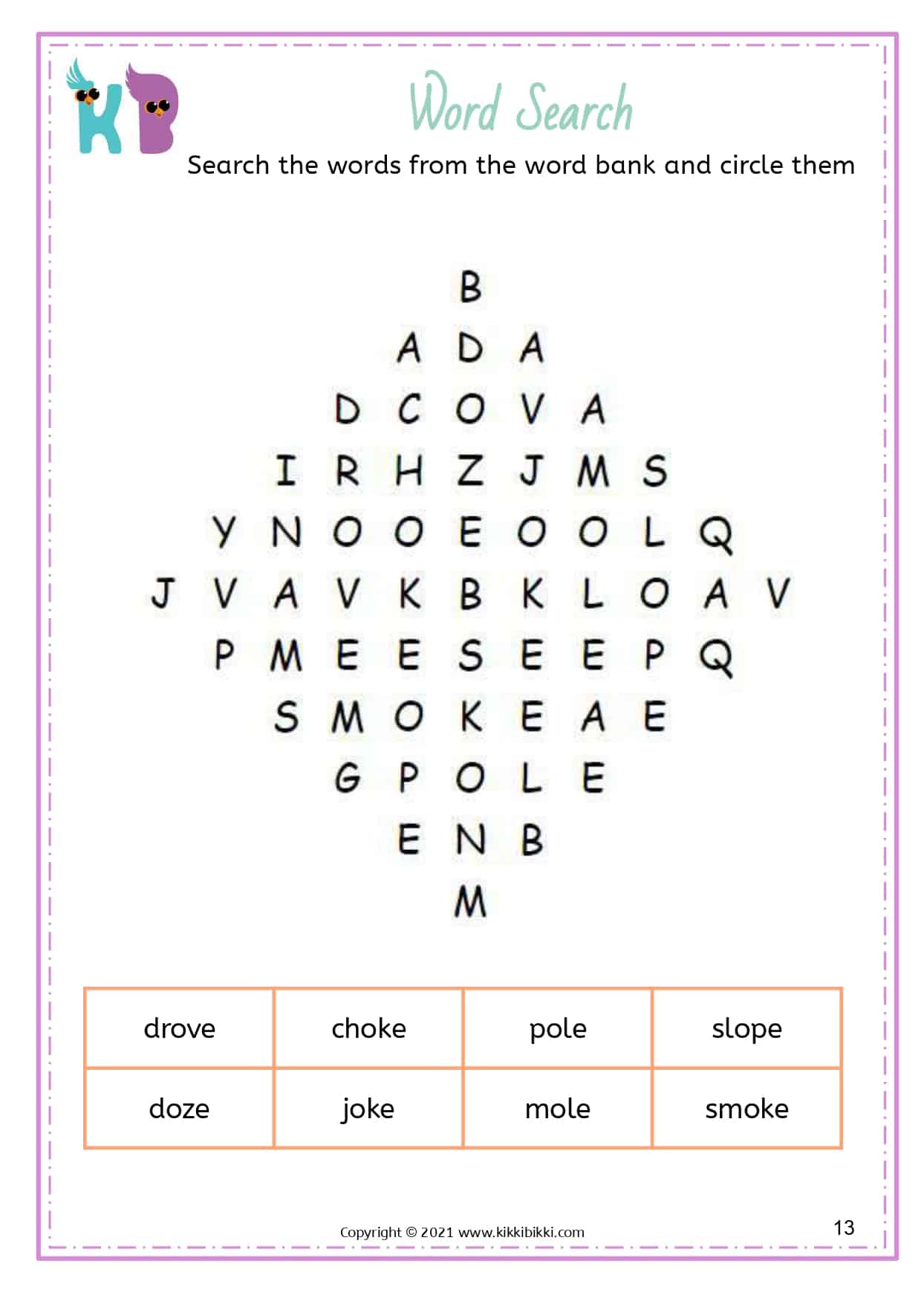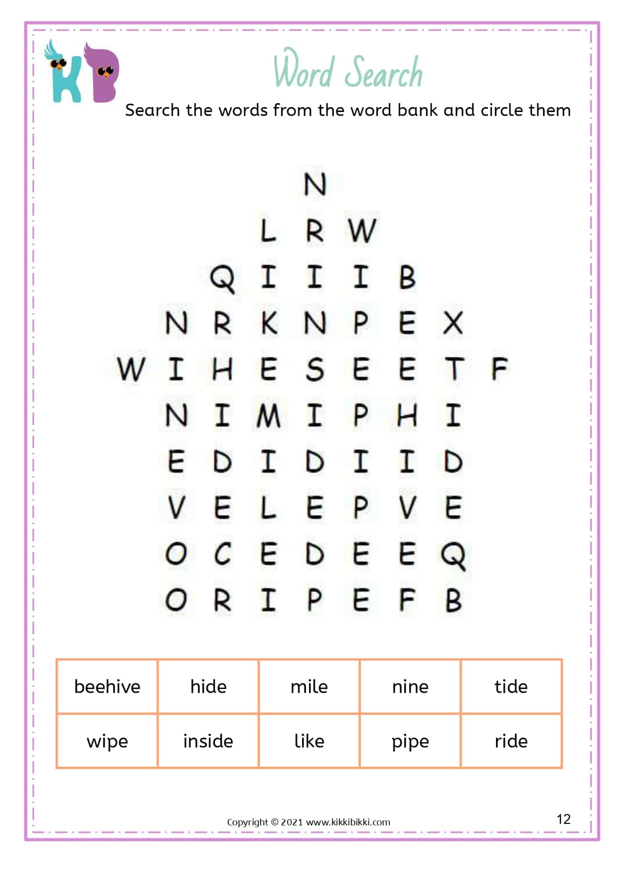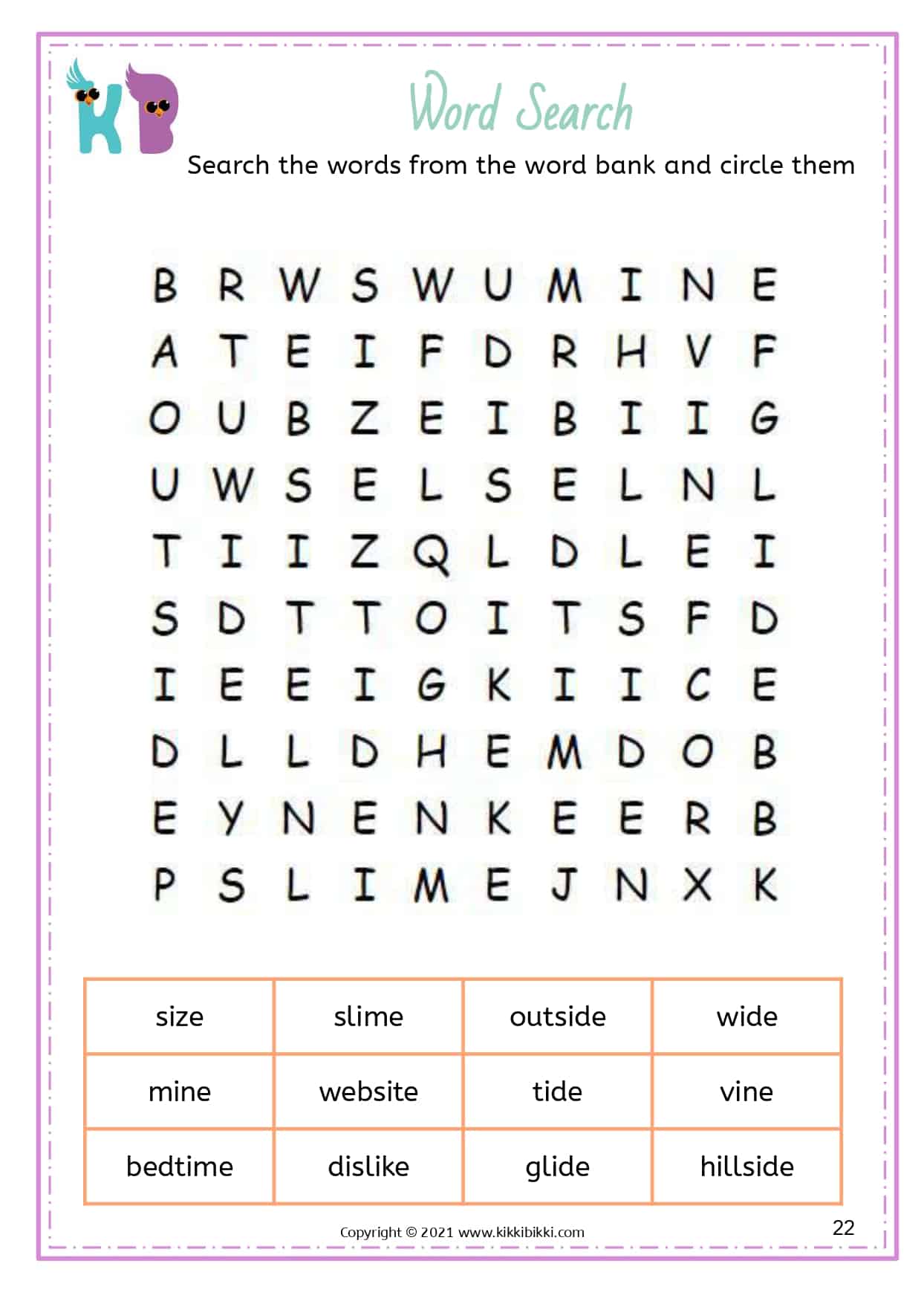 Our free printable word search worksheets with silent E specifically focus on reinforcing long vowel sounds. These worksheets are designed to assist kindergarteners in strengthening their understanding and application of this important phonetic principle. Each word search puzzle contains a selection of words featuring the silent E pattern, allowing students to actively search for and identify words with long vowel sounds created by the silent E. By engaging in these enjoyable word search exercises, young learners gain proficiency in differentiating between short and long vowel sounds, resulting in improved reading fluency. These interactive and engaging activities offer an entertaining way for students to reinforce their phonics skills while expanding their silent E word recognition abilities. Start printing our free printable word search worksheets today and discover the magic of silent E in developing reading fluency.