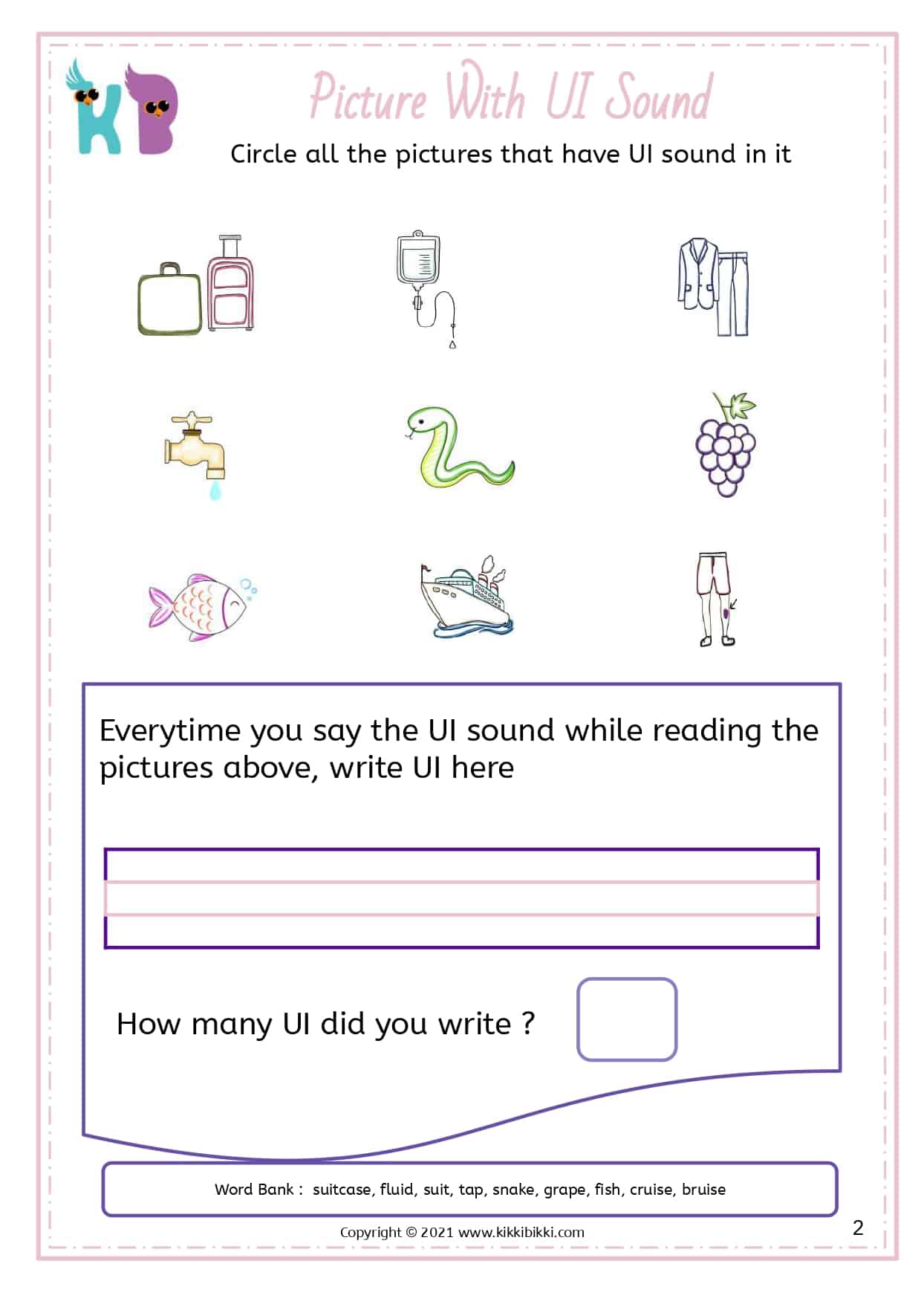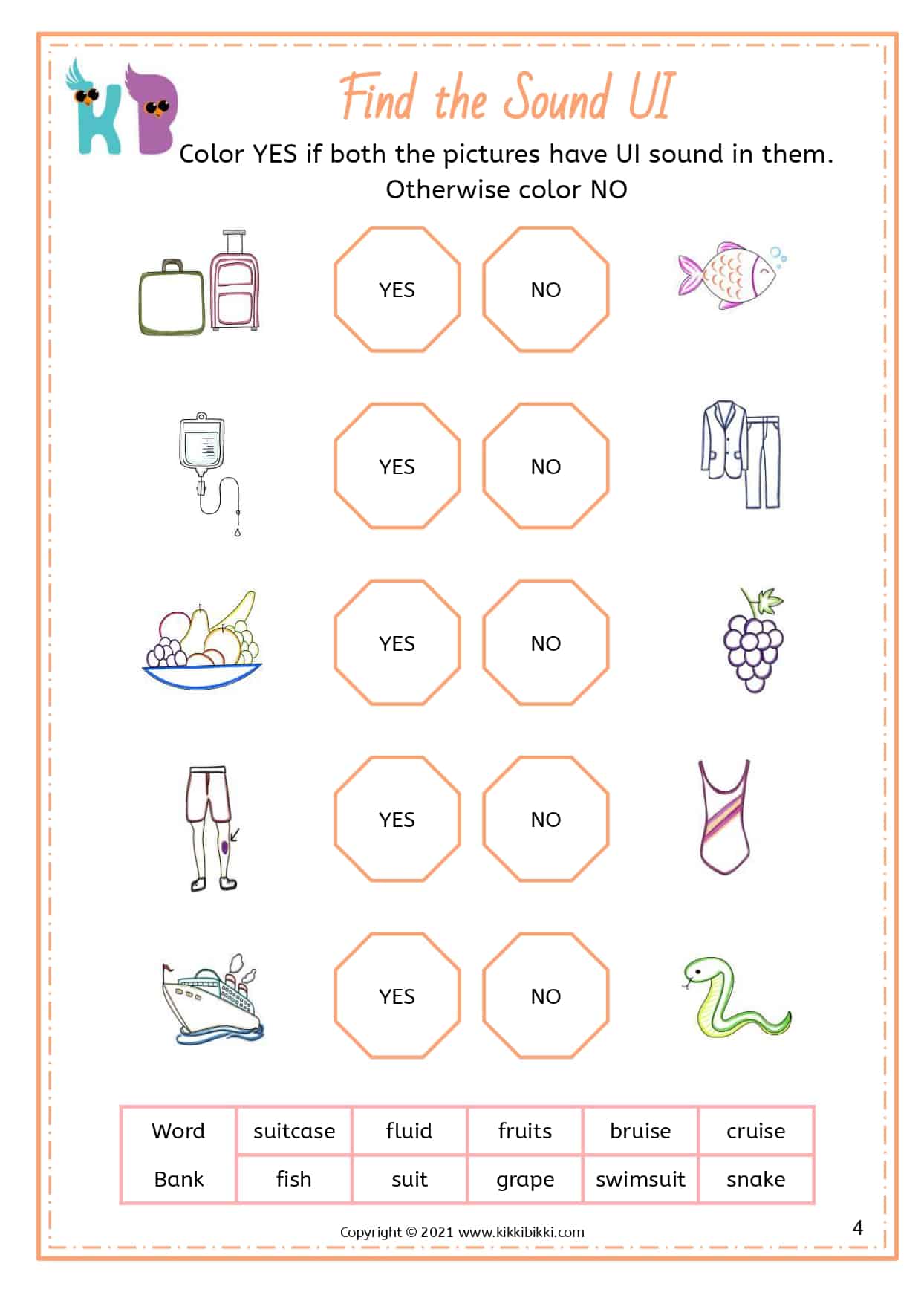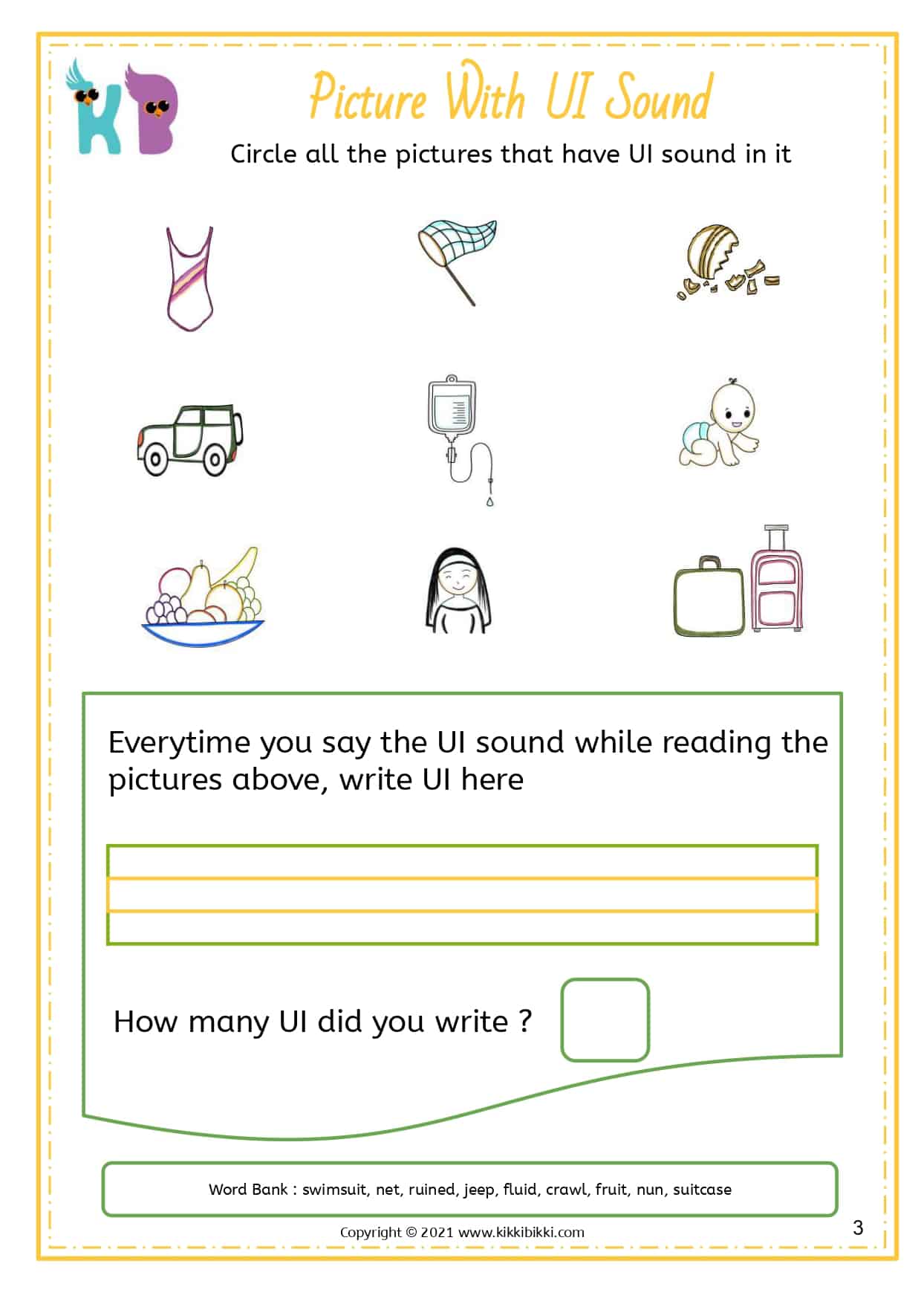 ew ue ui Sound comsolidation - kindergarten worksheets
