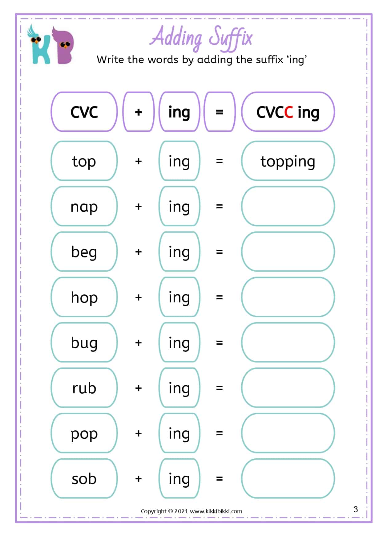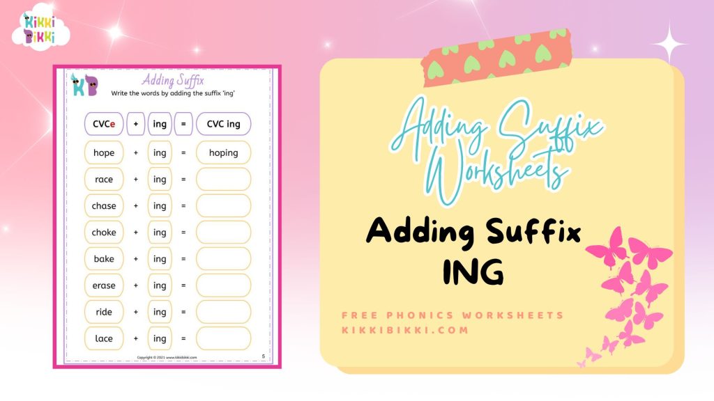In conclusion, our “Adding Suffix ING: Word Transformation Worksheet” is a fantastic resource for teaching children about suffixes in an engaging manner. It empowers them to master essential phonics concepts while enjoying the learning journey.