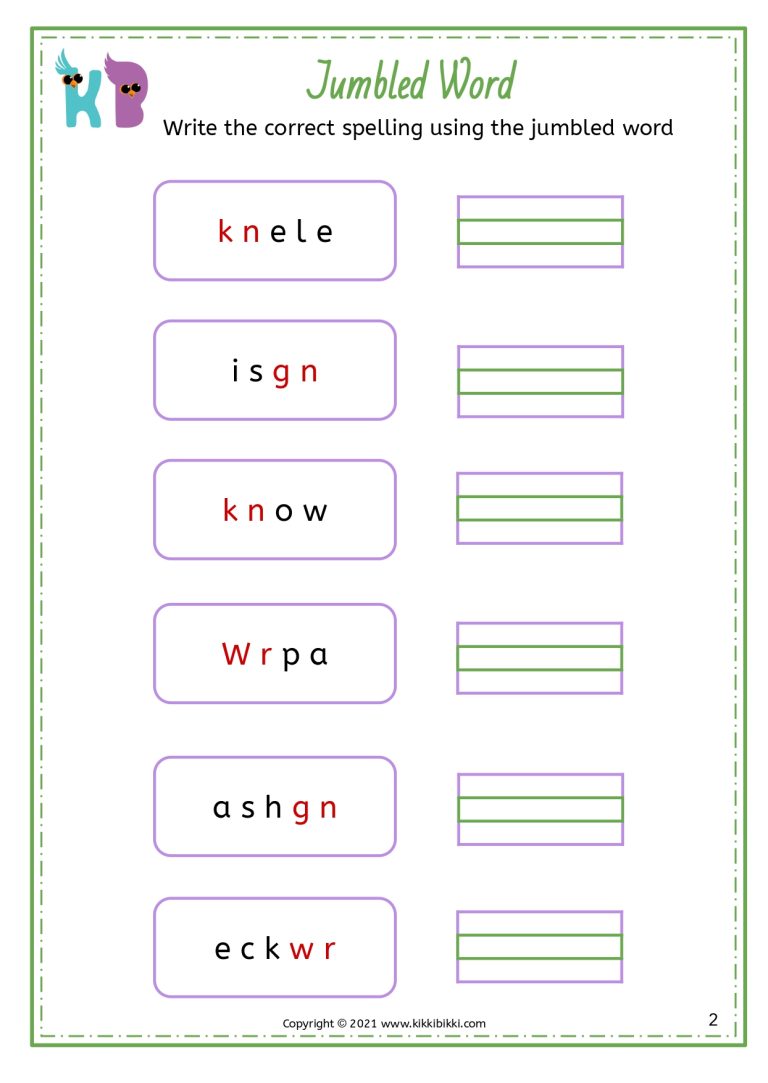 Word Family Worksheets (‘wr, kn, gn’)