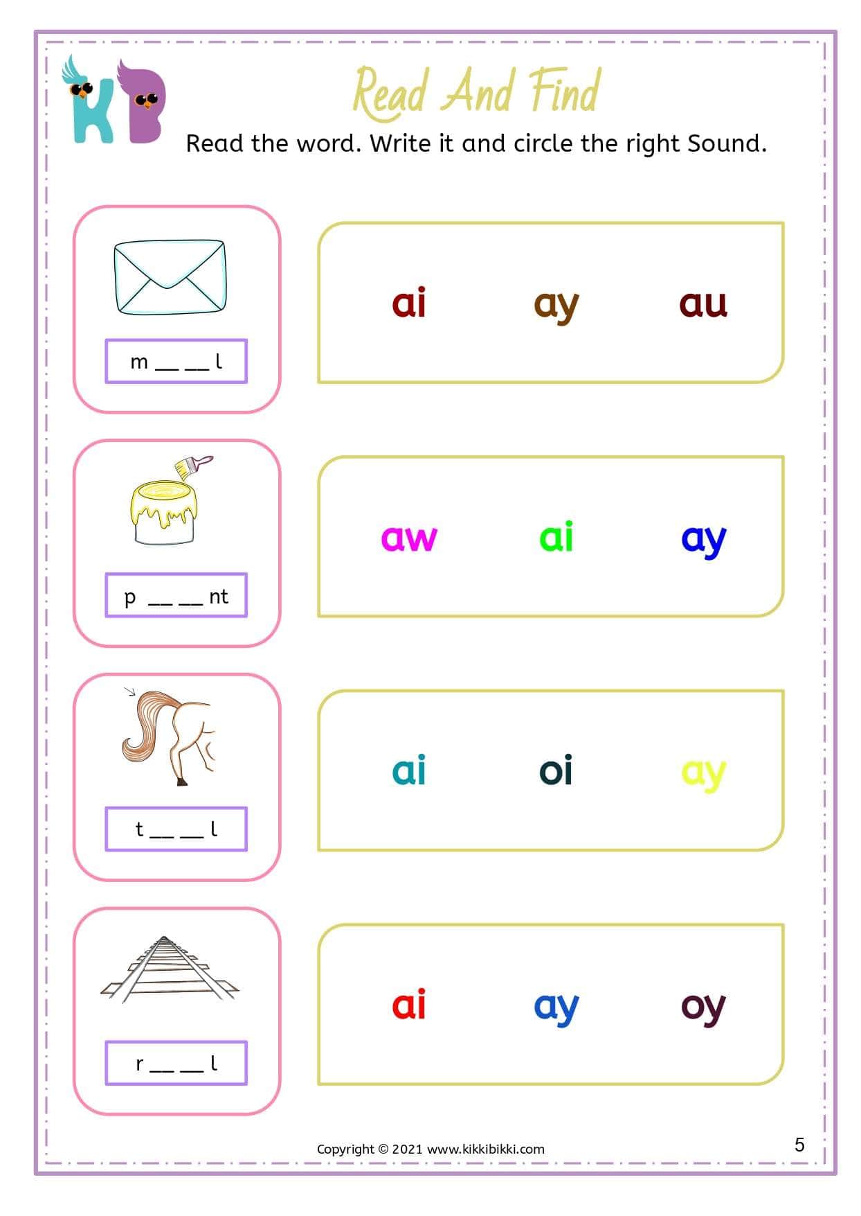 In conclusion, the “Introduction to AI Sound” worksheet from KikkiBikki is a valuable resource for teaching children the “ai” digraph. Through engaging activities and a user friendly format, this worksheet provides a fun and effective way for children to learn and practice the “ai” sound.
