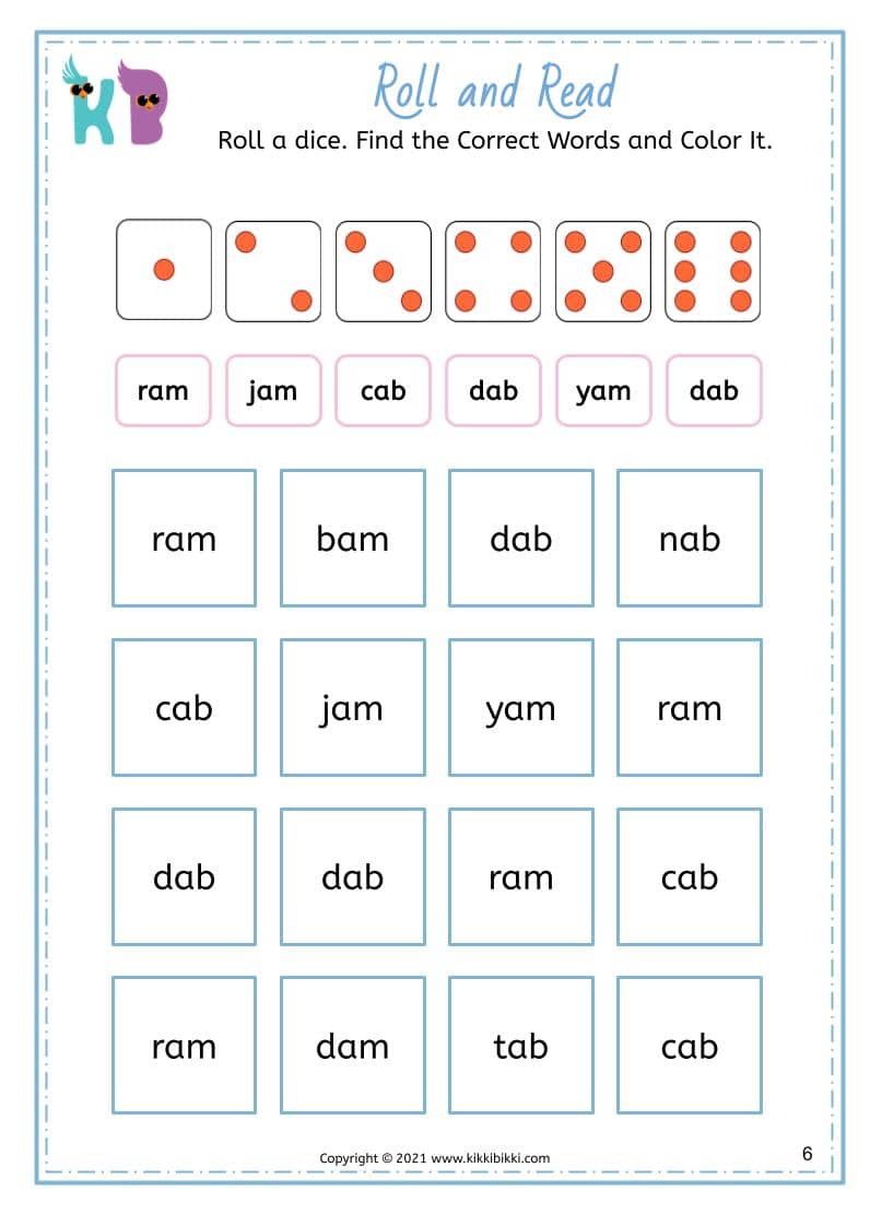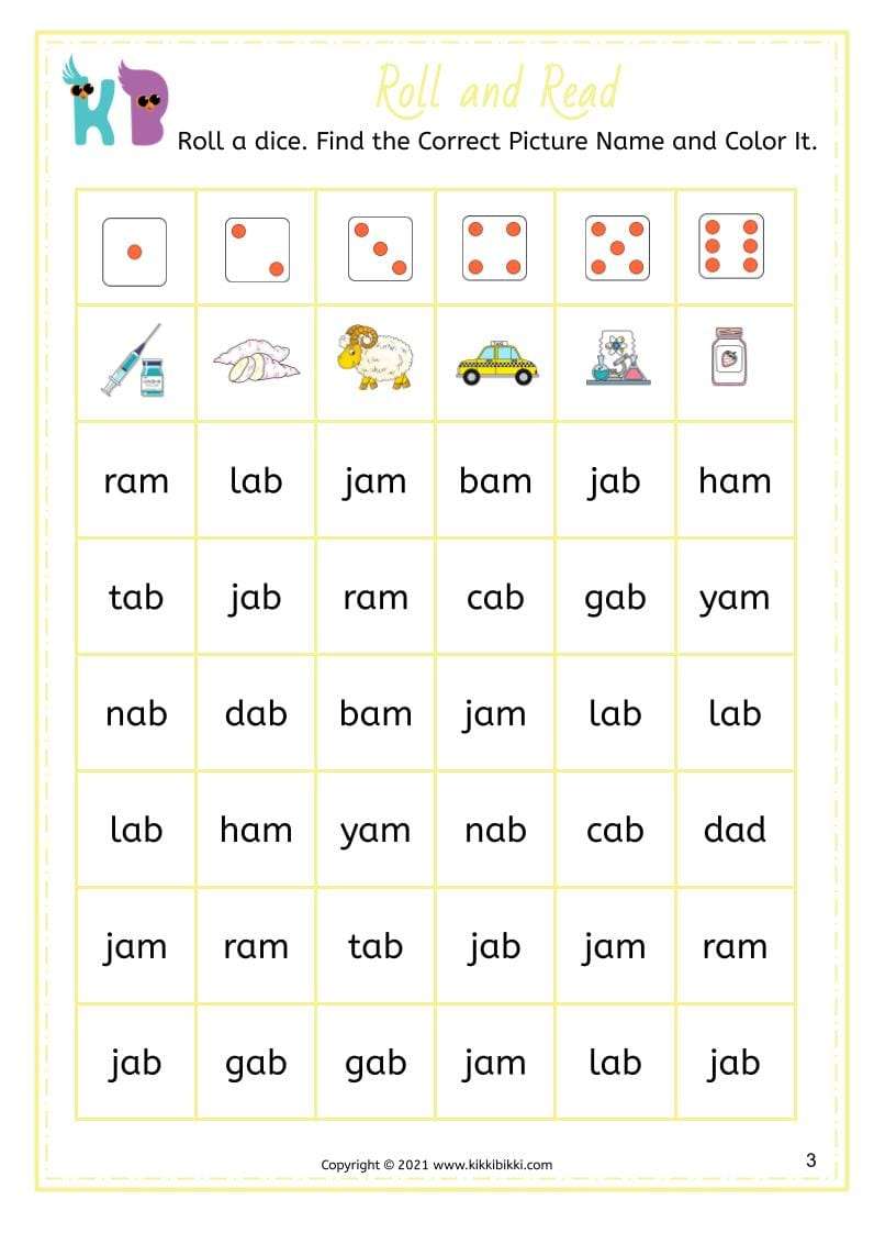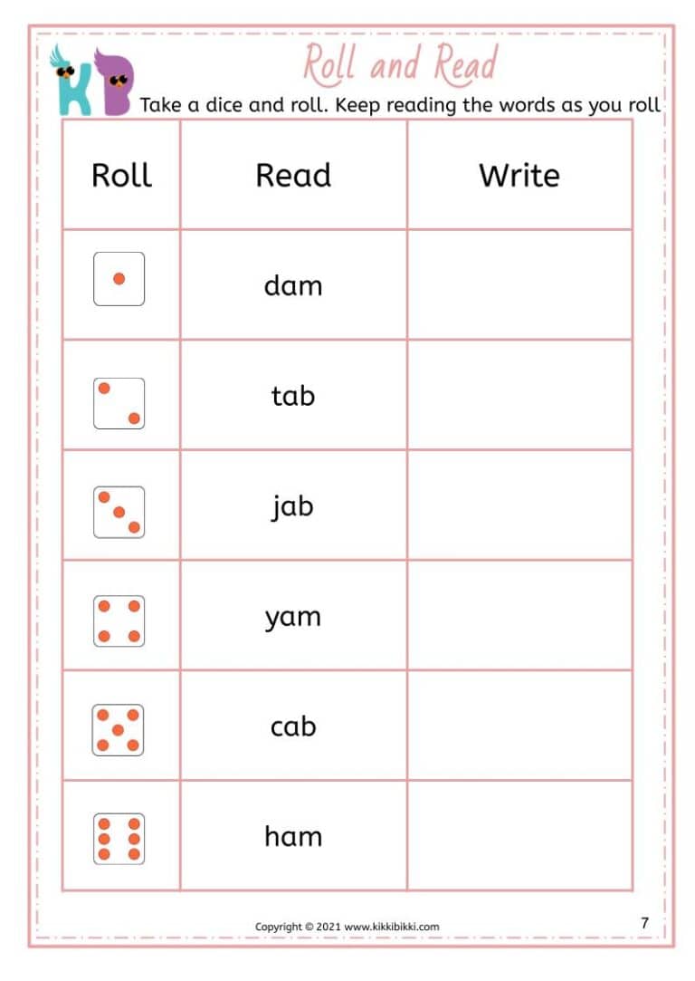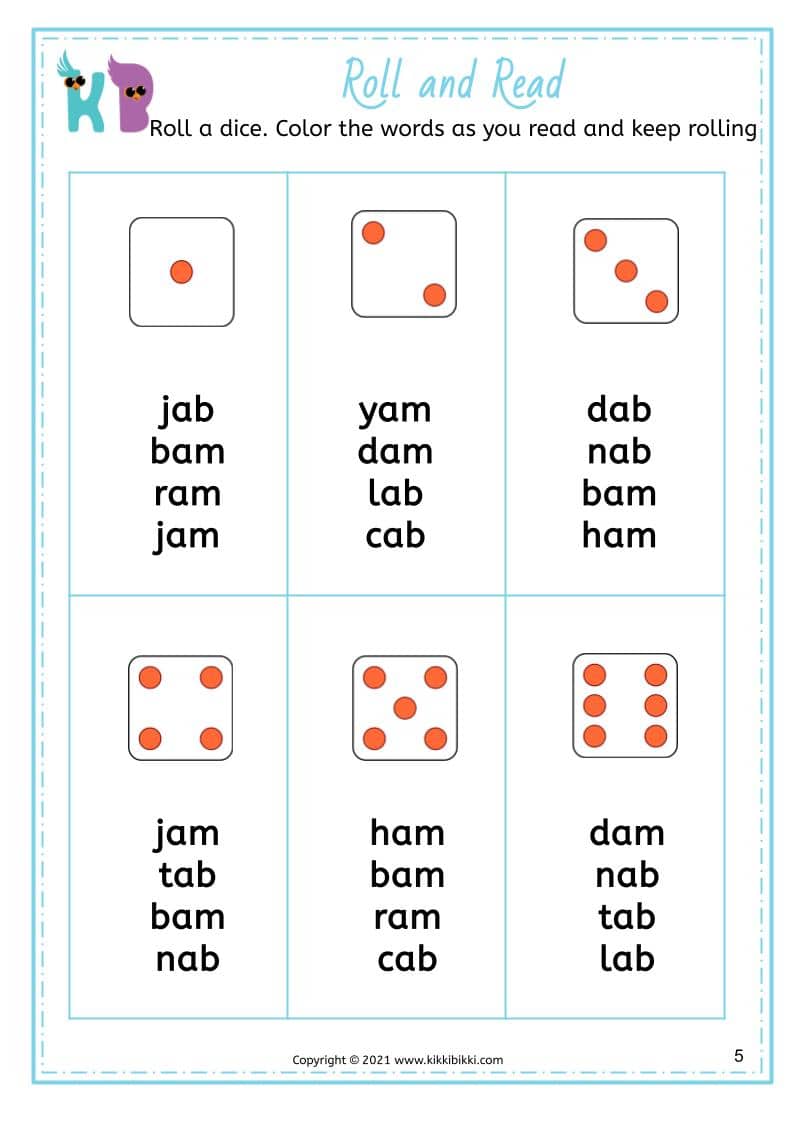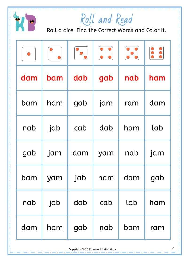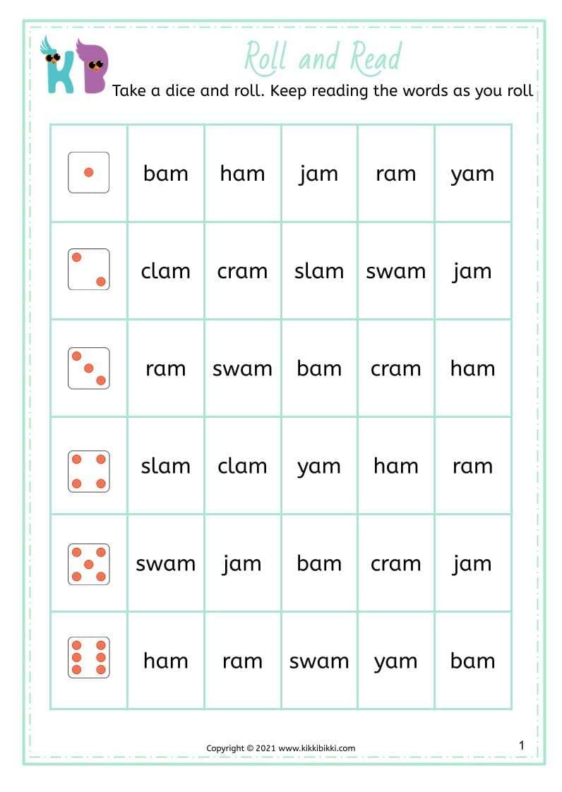 “am” Word Family Word List Worksheet: This worksheet provides a list of words from the am word family. Children can practice reading and spelling these words, reinforcing their understanding of the am sound.