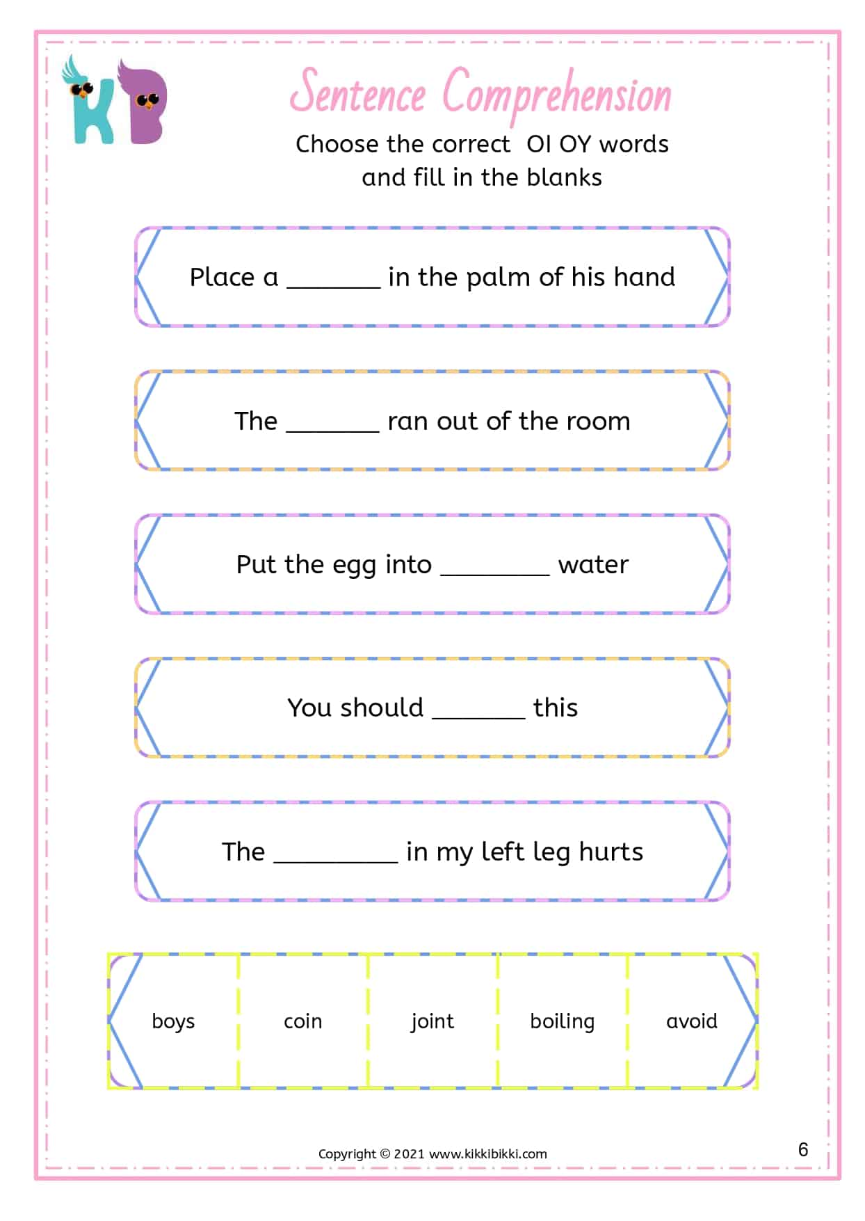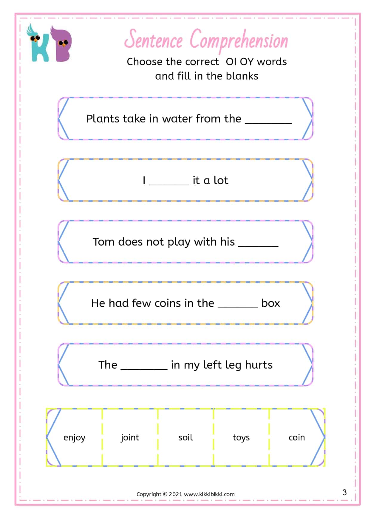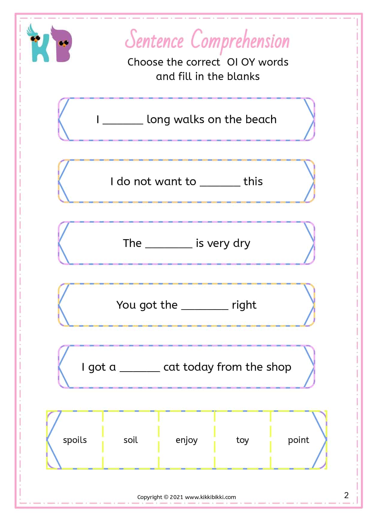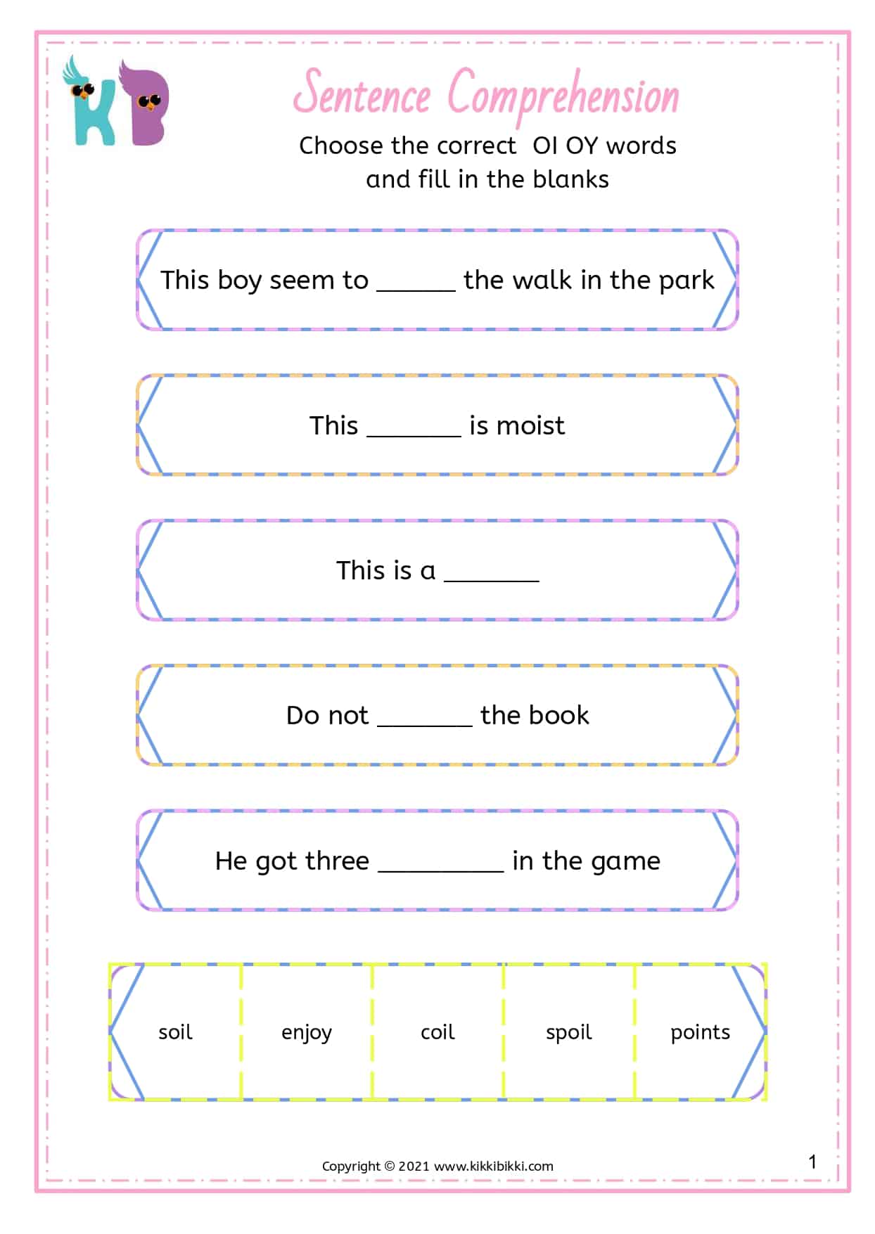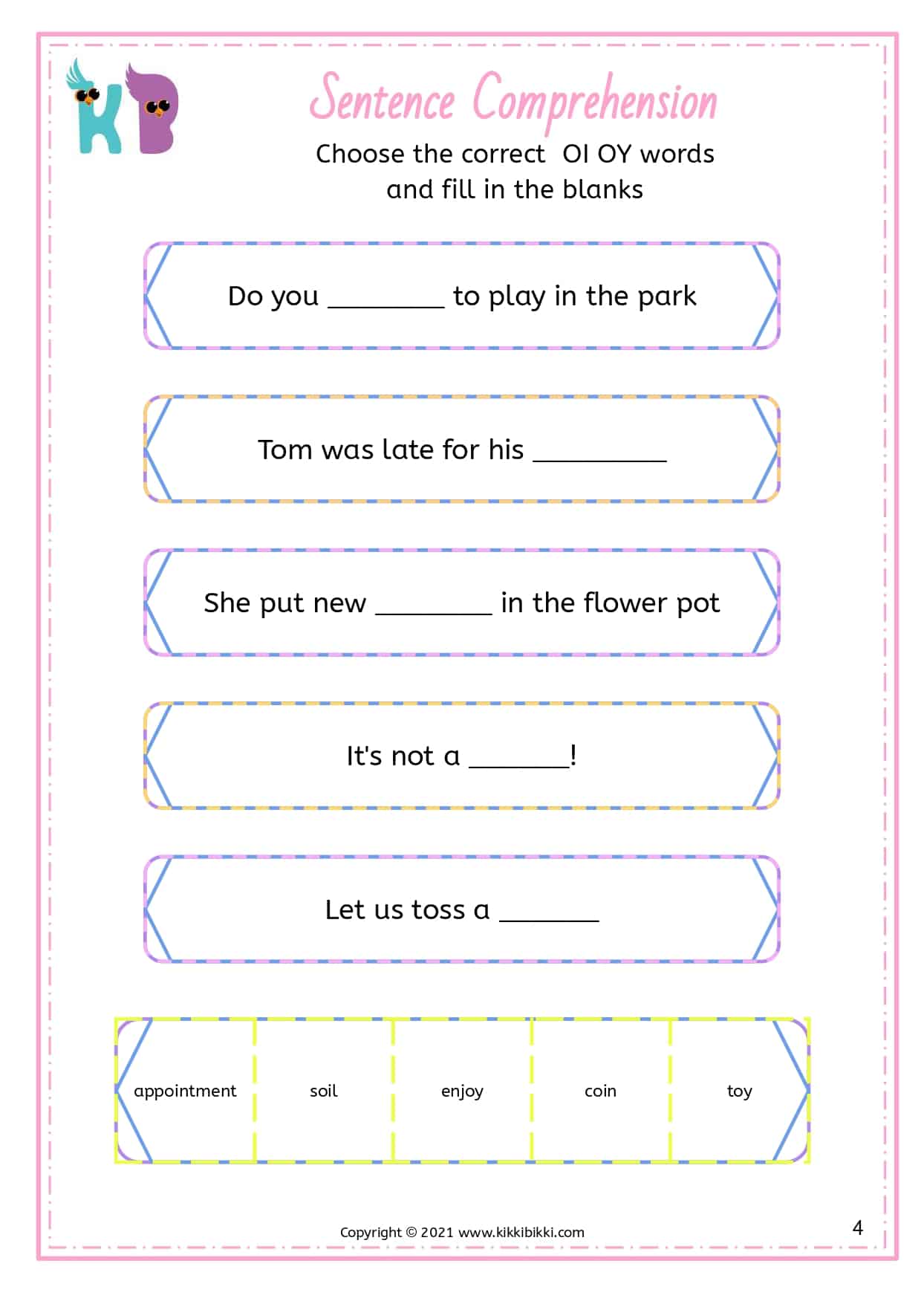 Understanding OI and OY Sounds: Sentence Comprehension Worksheets for Kindergarten