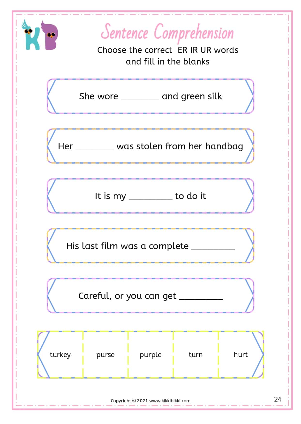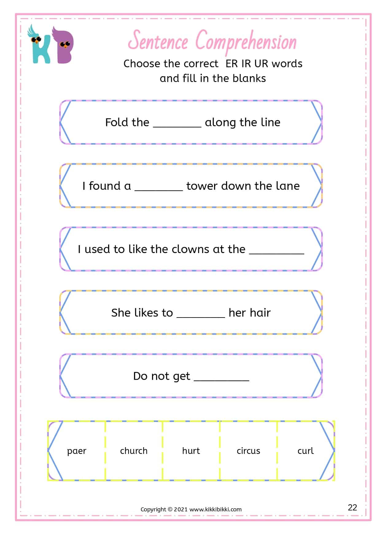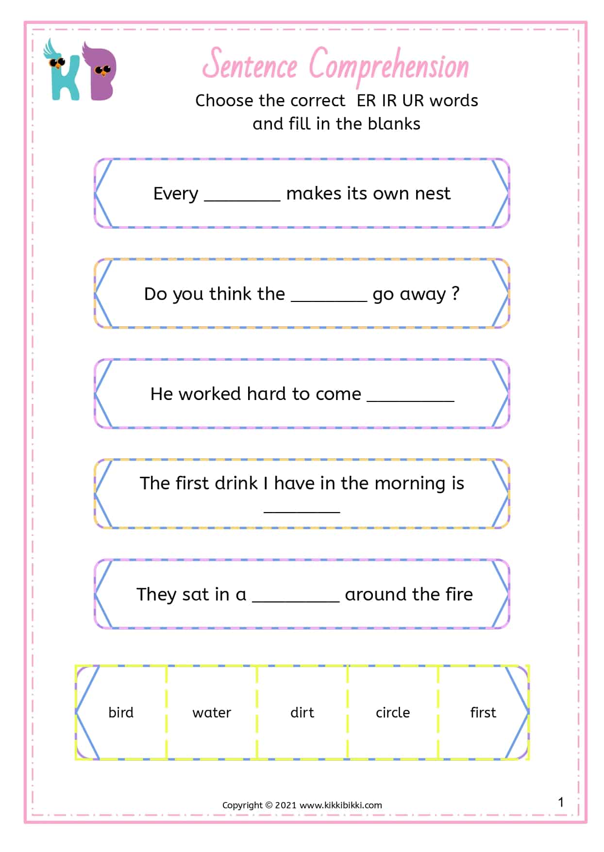 Welcome to KikkiBikki, your go to place for fun and educational phonics activities! We’re excited to present our latest worksheet designed to help young learners master the Bossy R sound, focusing on the “ar,” “er,” “ir,” “or,” and “ur” sound families.