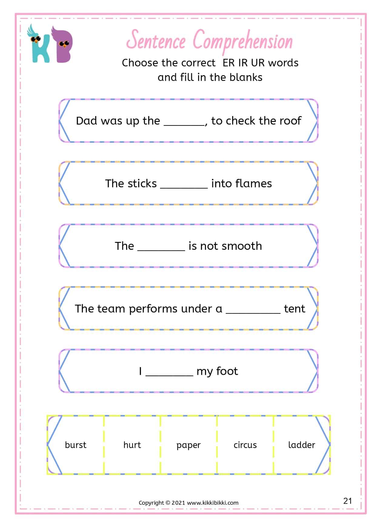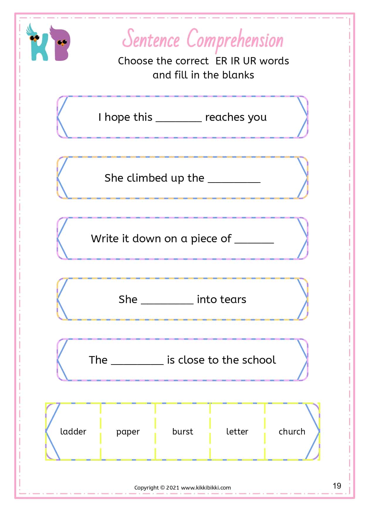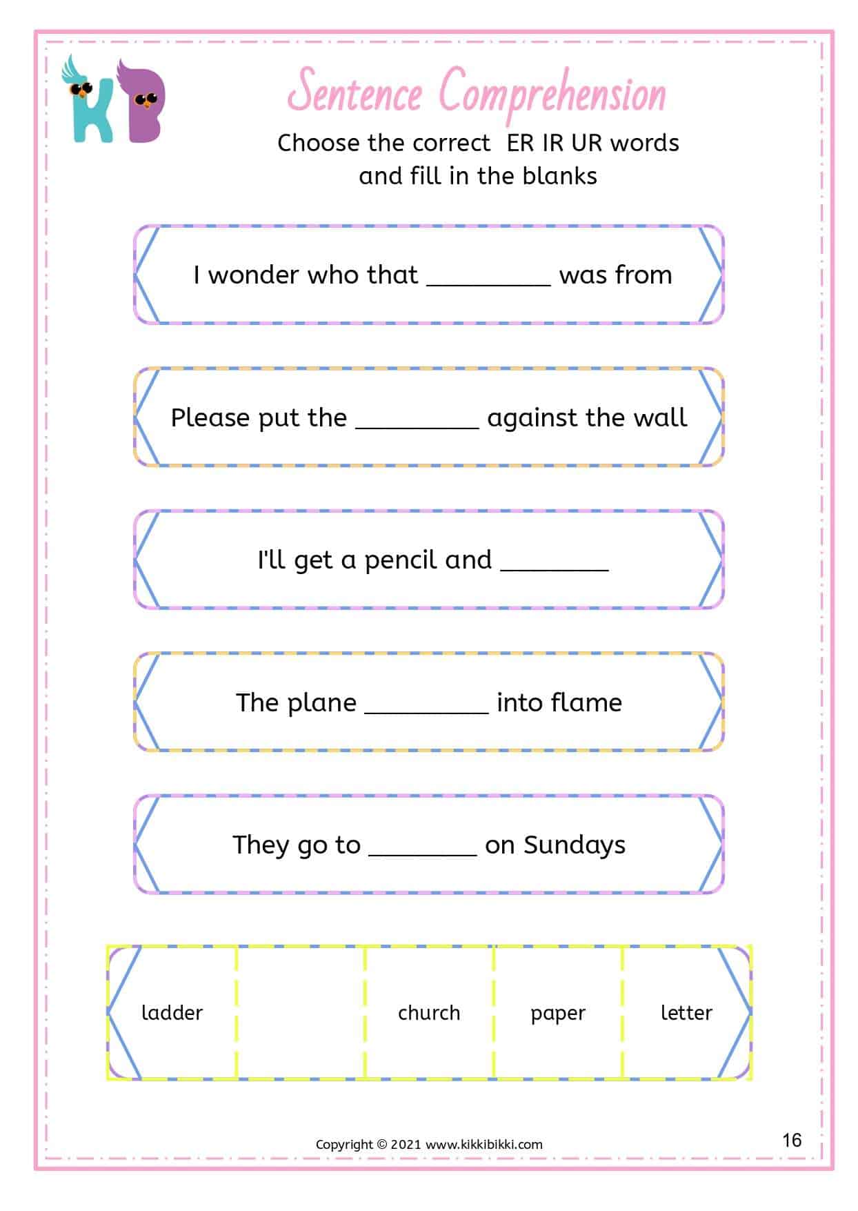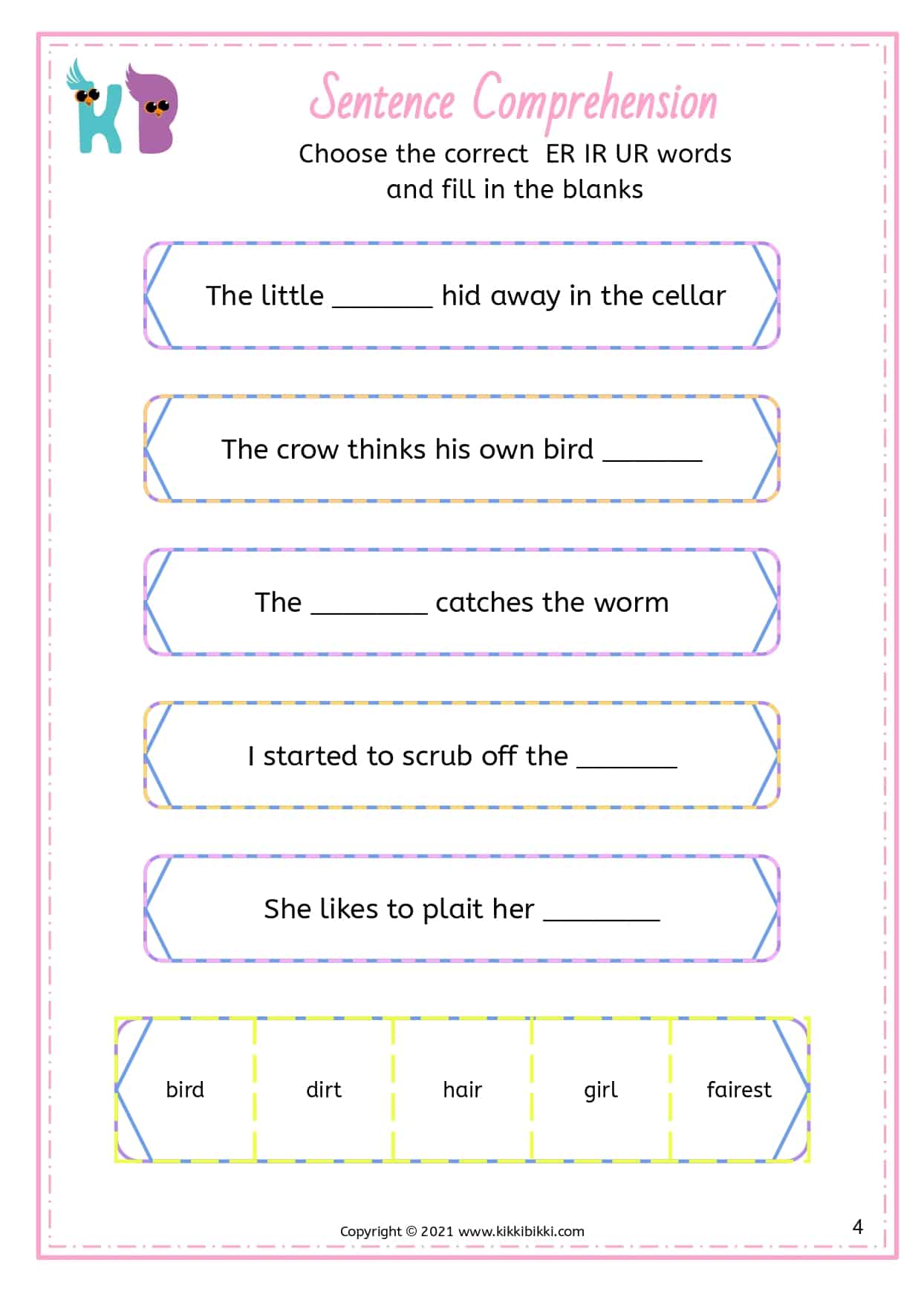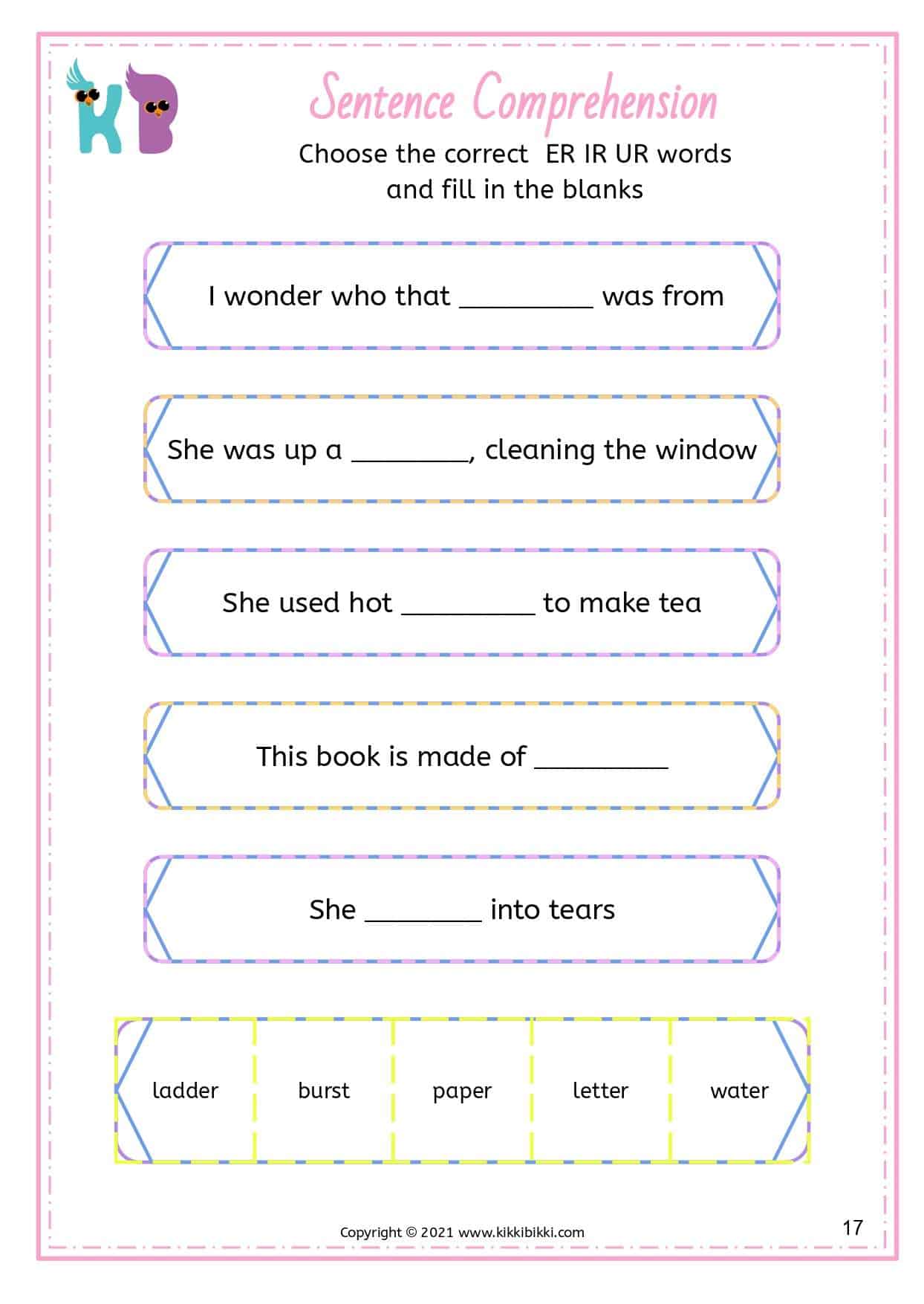 Bossy R : Sentence Comprehension Worksheets for IR ER and UR Words