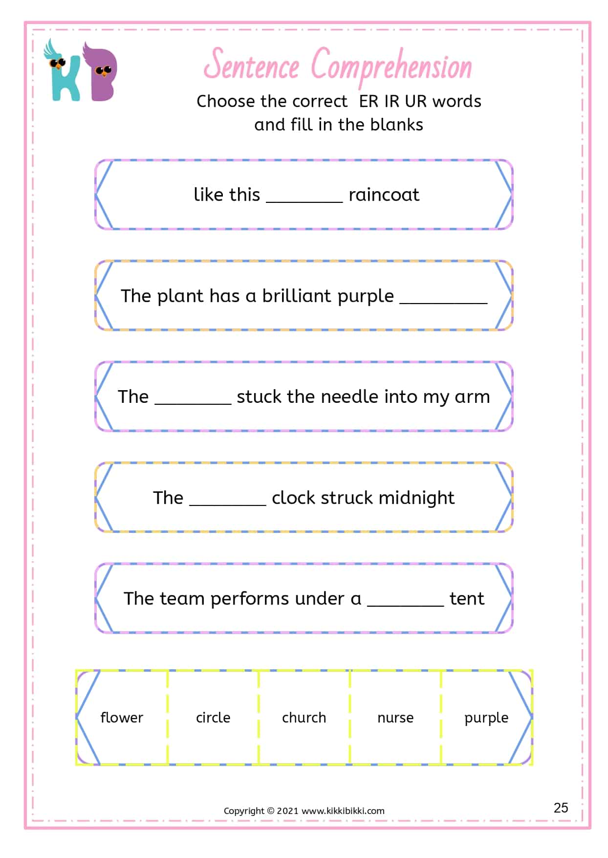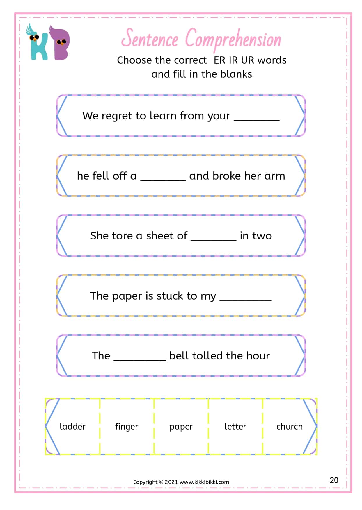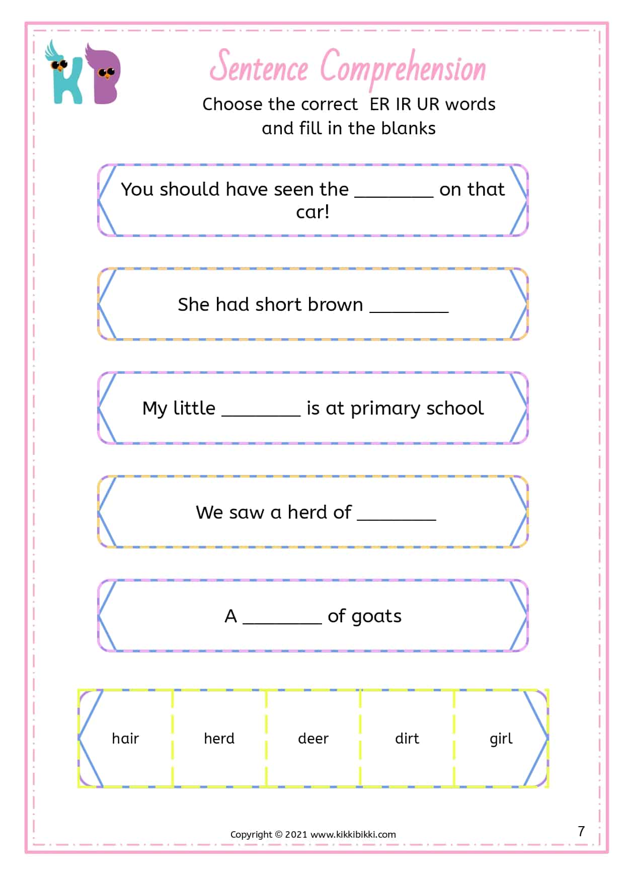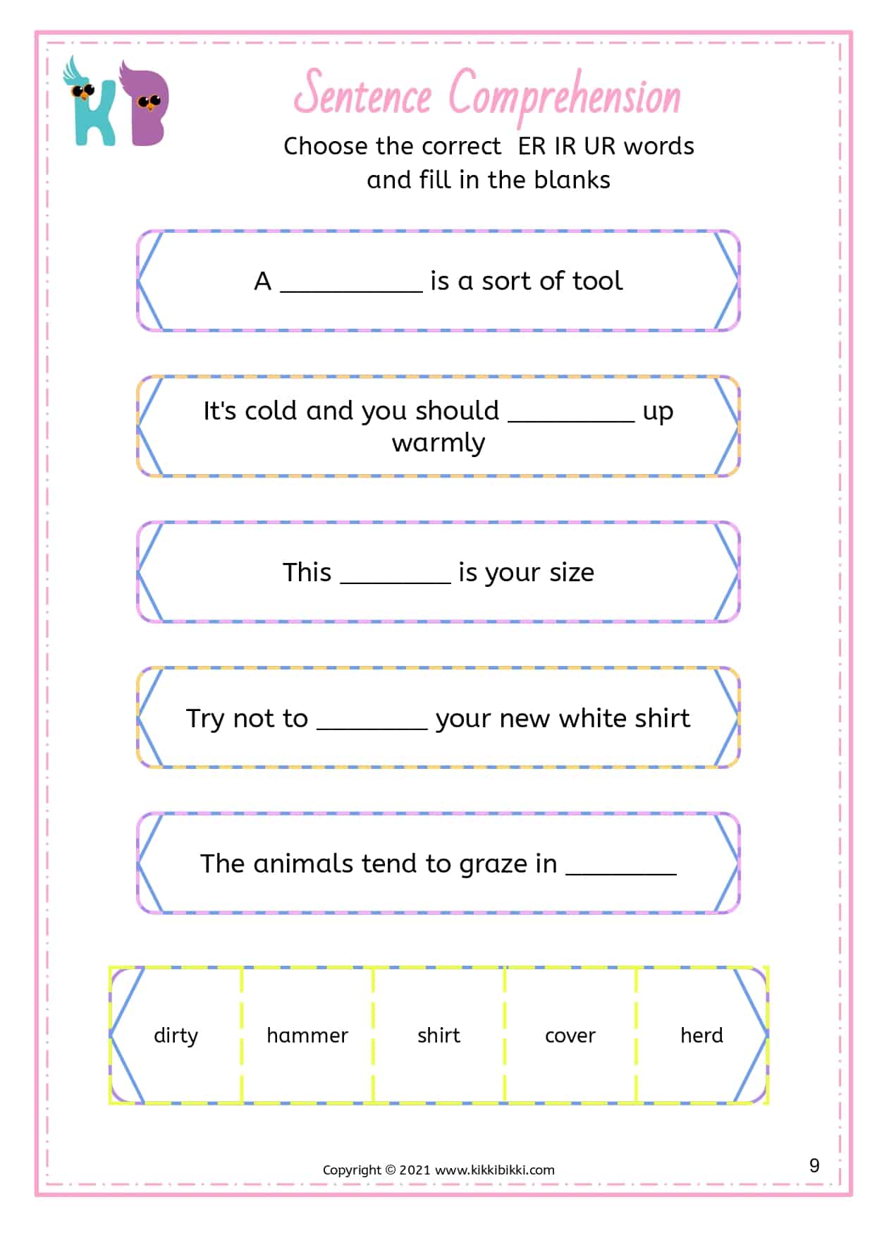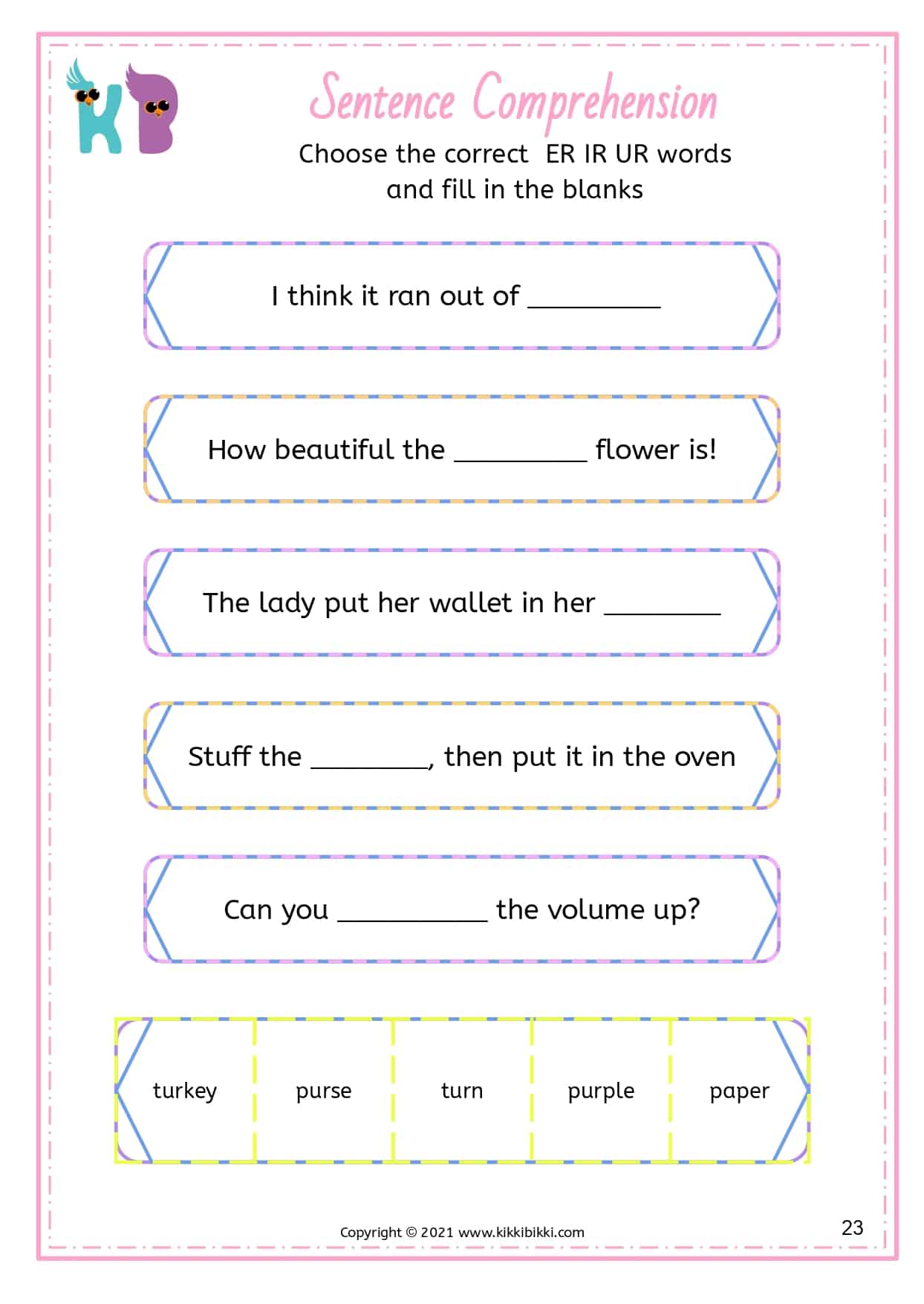 Bossy R : Sentence Comprehension Worksheets for IR ER and UR Words