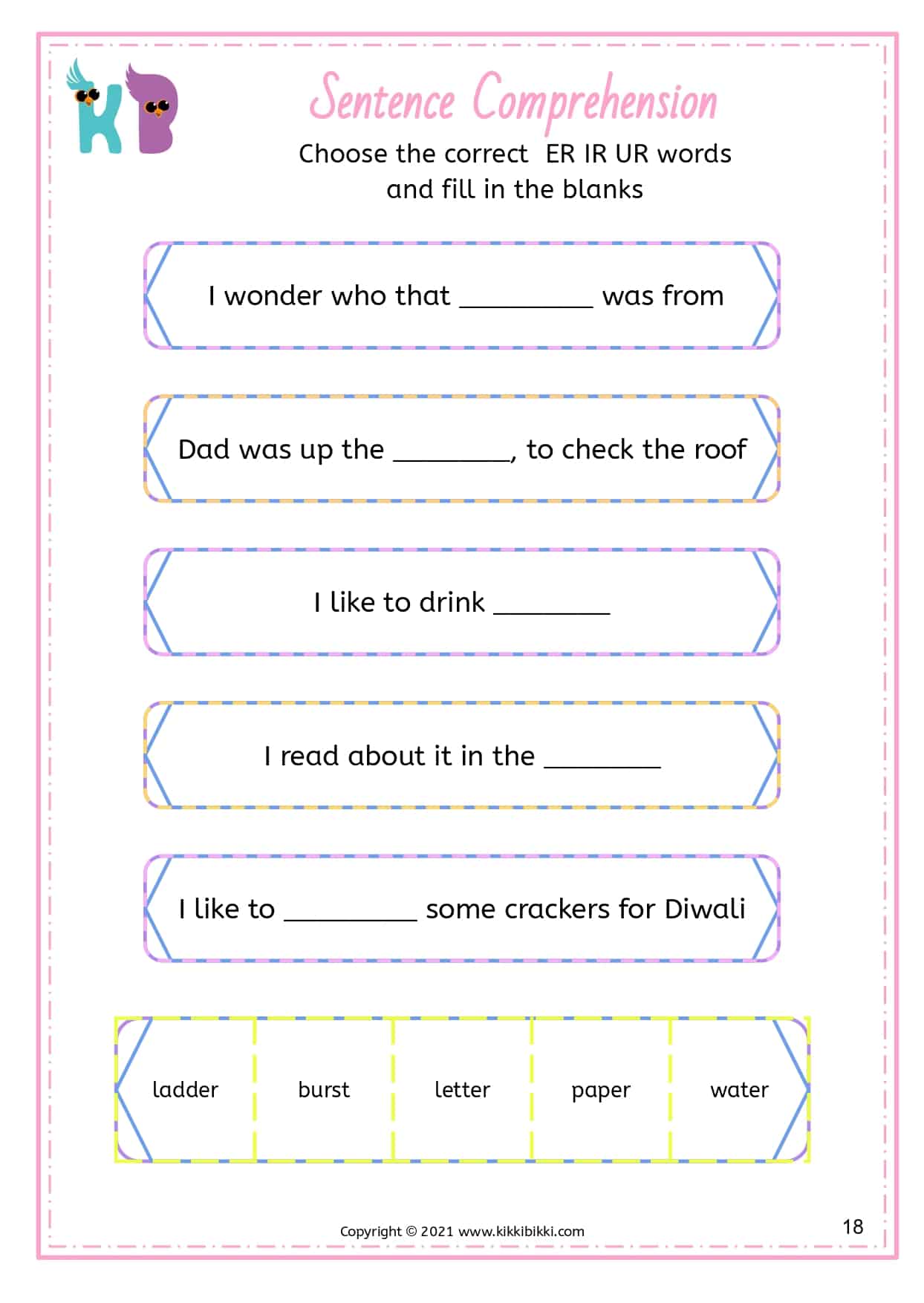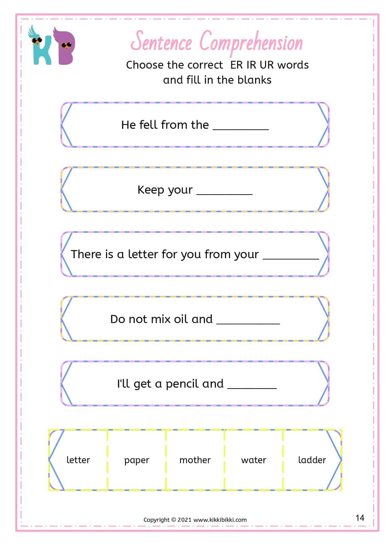 At KikkiBikki, we believe that hands-on learning makes educational concepts more tangible and memorable. Our free, printable worksheets are designed to offer children opportunities for active engagement and discovery. By incorporating playful activities like sentence comprehension exercises, we aim to spark a love for learning and deepen their understanding of phonics concepts.