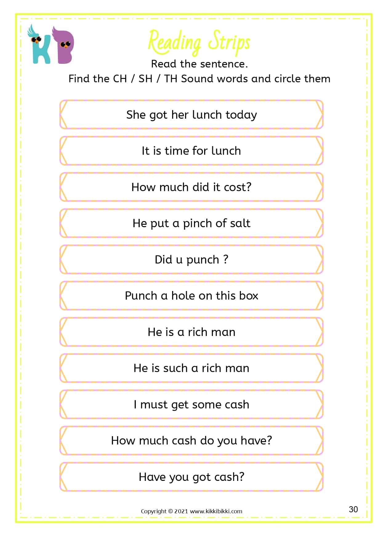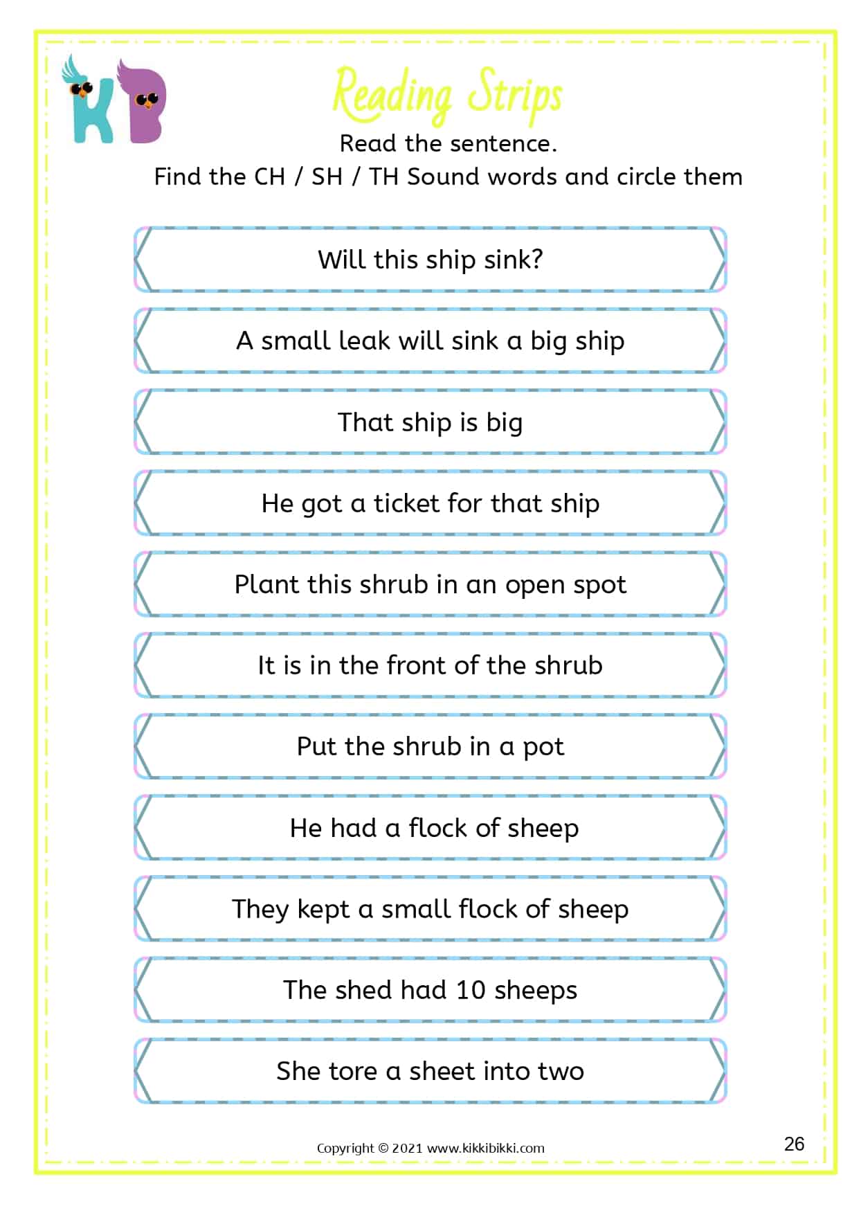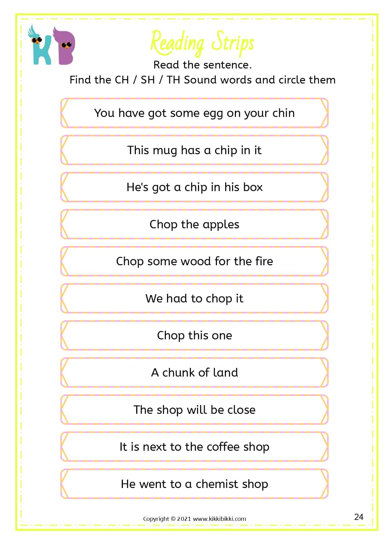 Learn to read digraphs - ch sh th Words 32 Free Worksheets