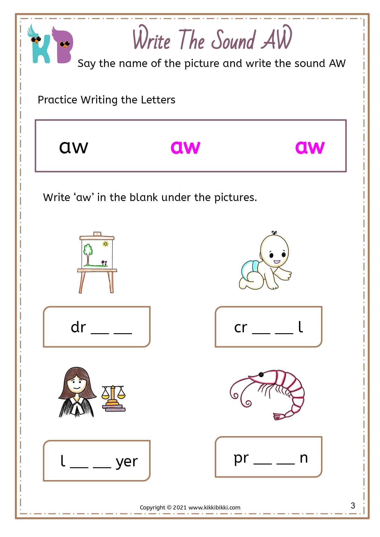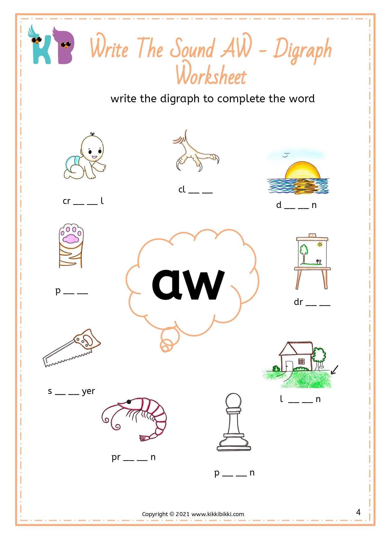 In conclusion, our “Consonant Digraph: Introduction AW Sound – Write the Sound” worksheet is a valuable tool for teaching young learners about the AW digraph. Through interactive activities and engaging content, this worksheet helps children master this important phonics concept while enjoying the learning process.