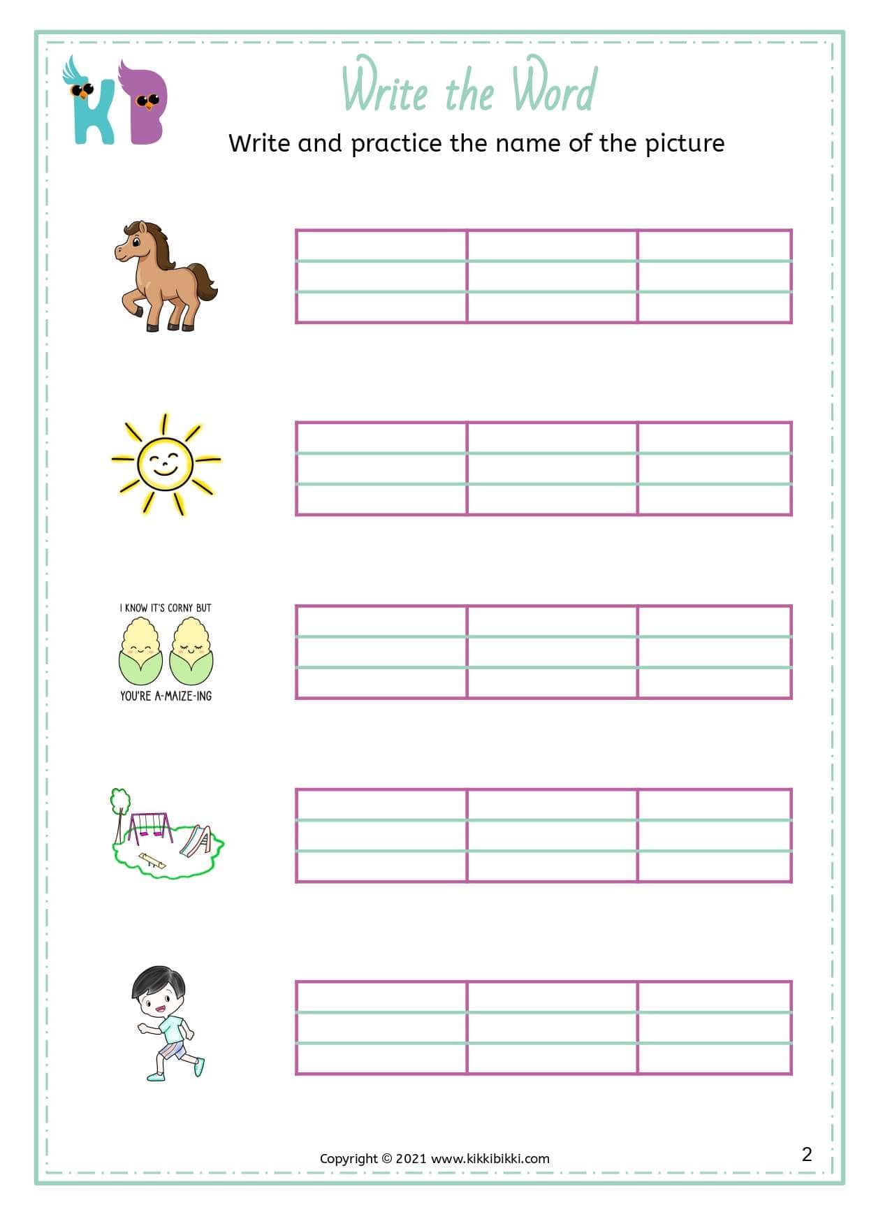 This interactive exercise encourages kindergarten children to practice identifying and writing words that belong to the “UN” word family, enhancing their spelling and reading skills in a fun and engaging way.